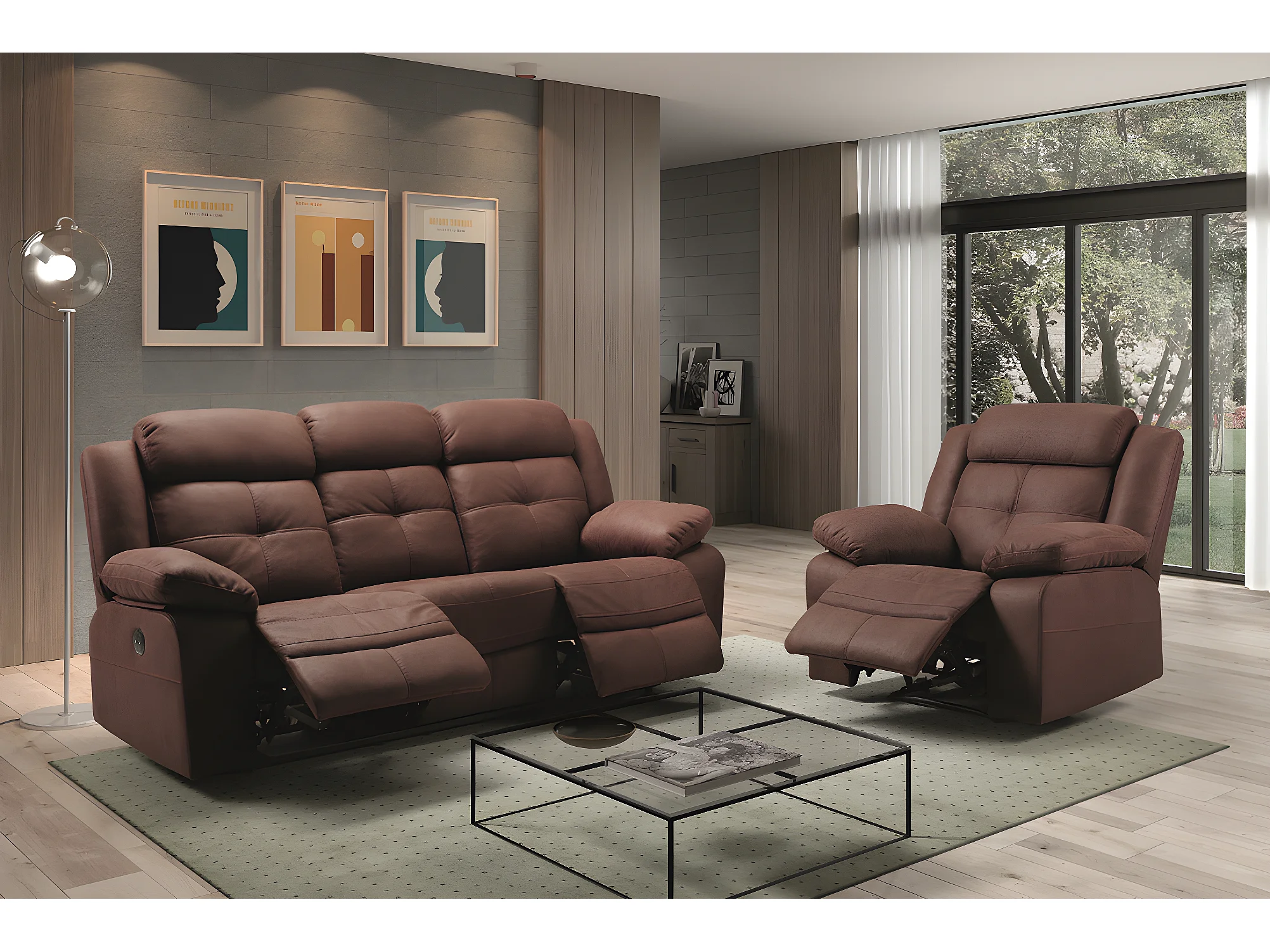 Canapé de 3 places (2 relax manuel) en tissu couleur Chocolat fil d'or
