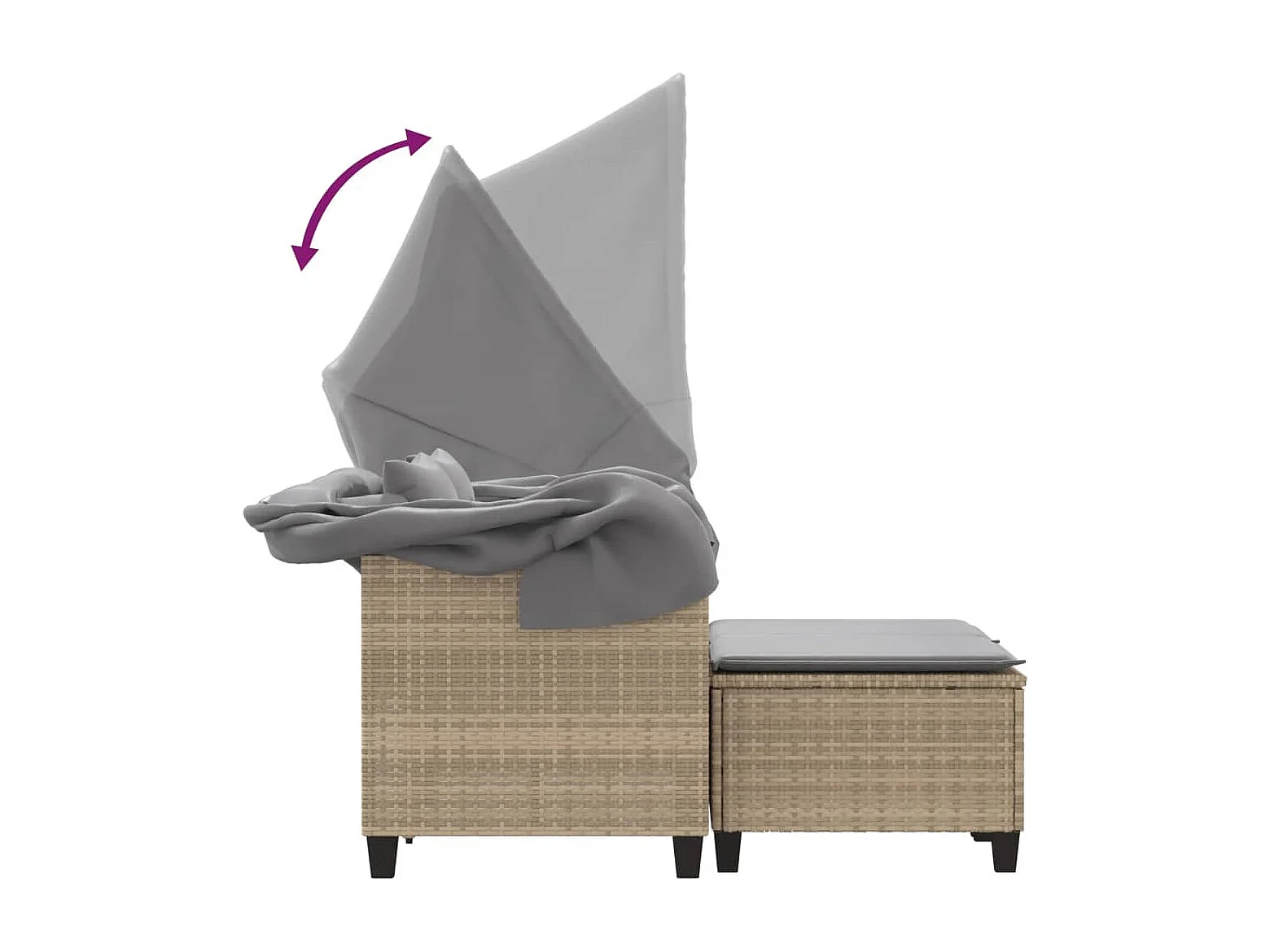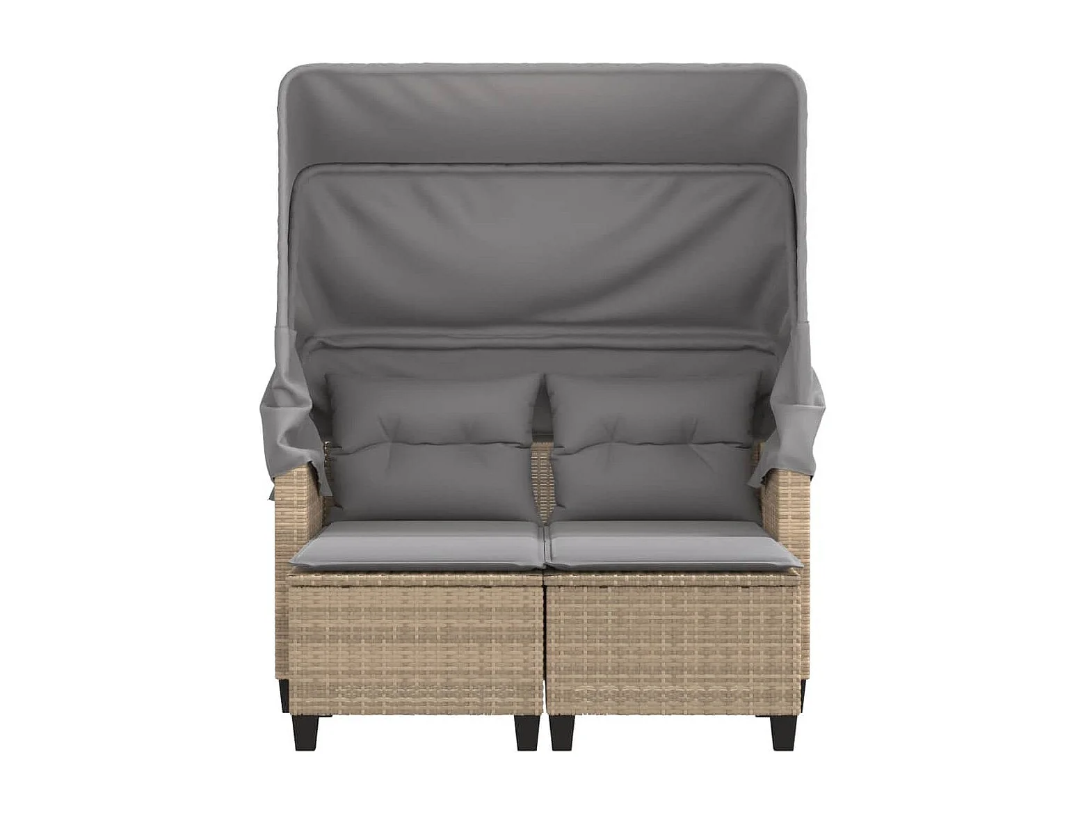 Canapé de jardin 2 places avec auvent et tabourets beige rotin