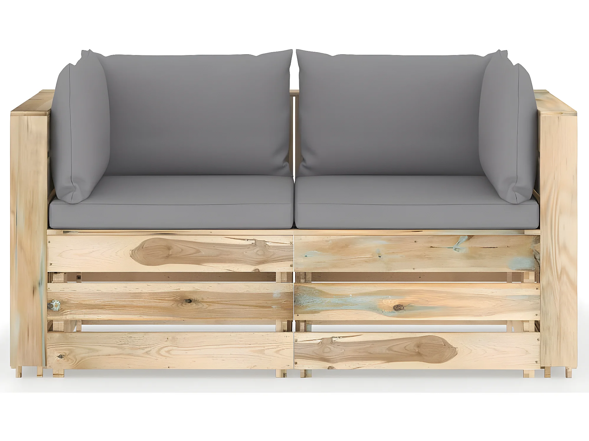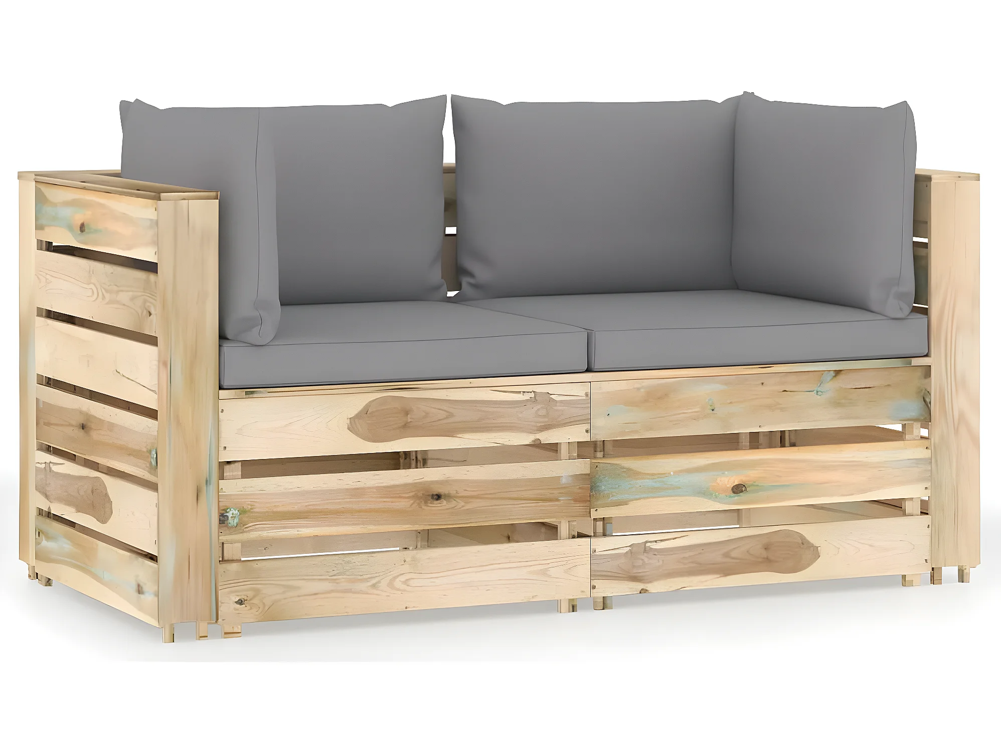 Canapé de jardin 2 places avec coussins Bois imprégné de vert