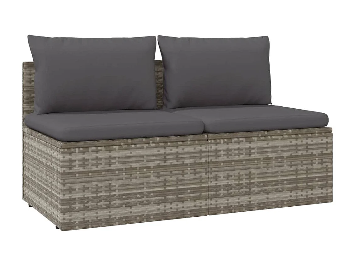 Canapé de jardin 2 places avec coussins Gris Résine tressée