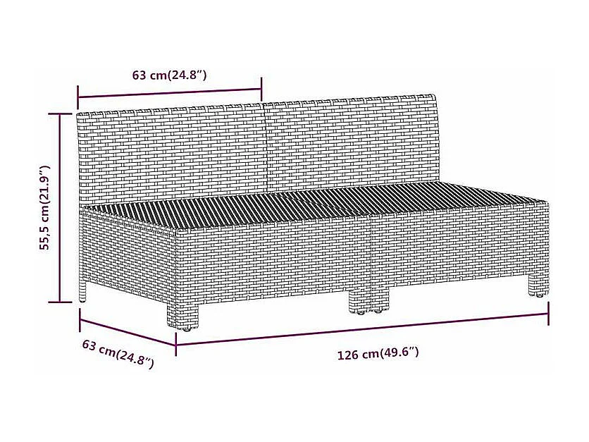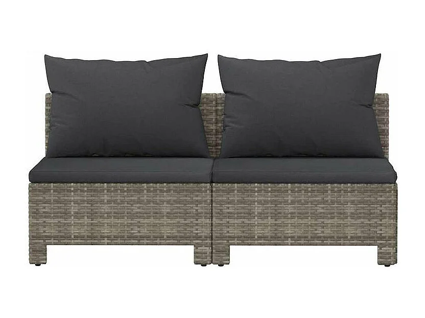 Canapé de jardin 2 places avec coussins Gris Résine tressée