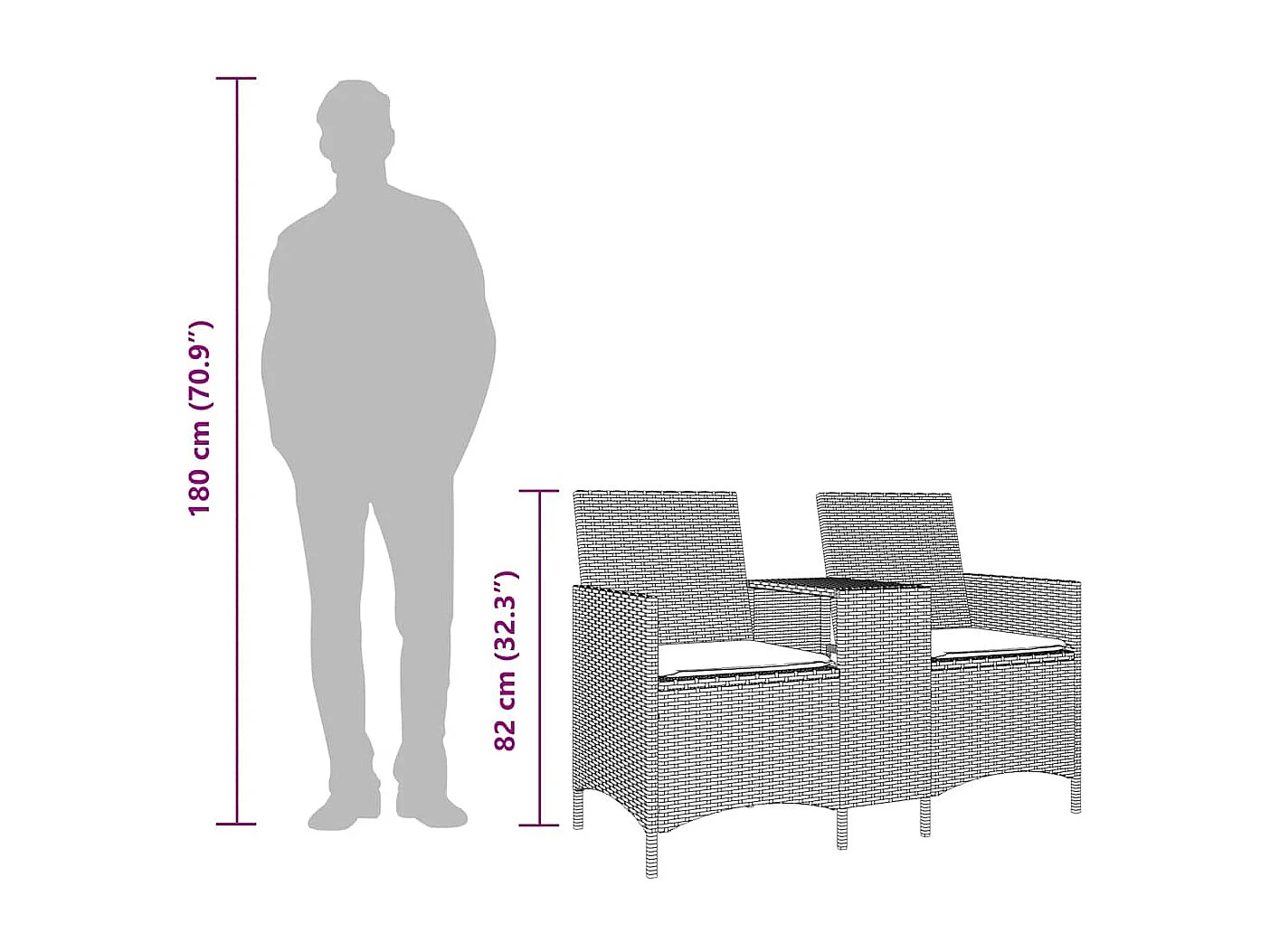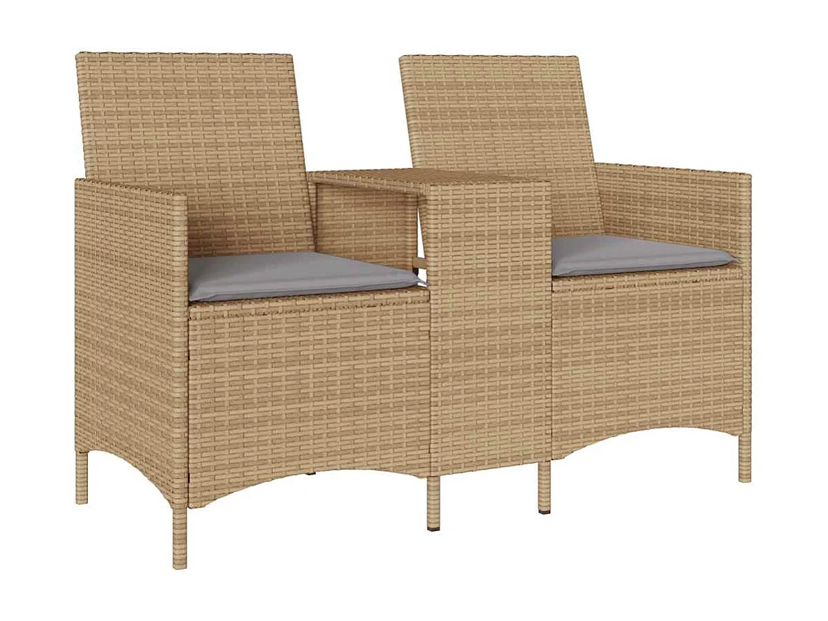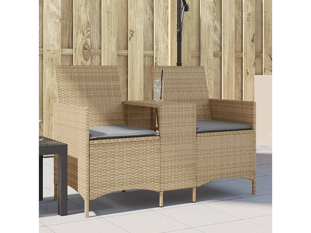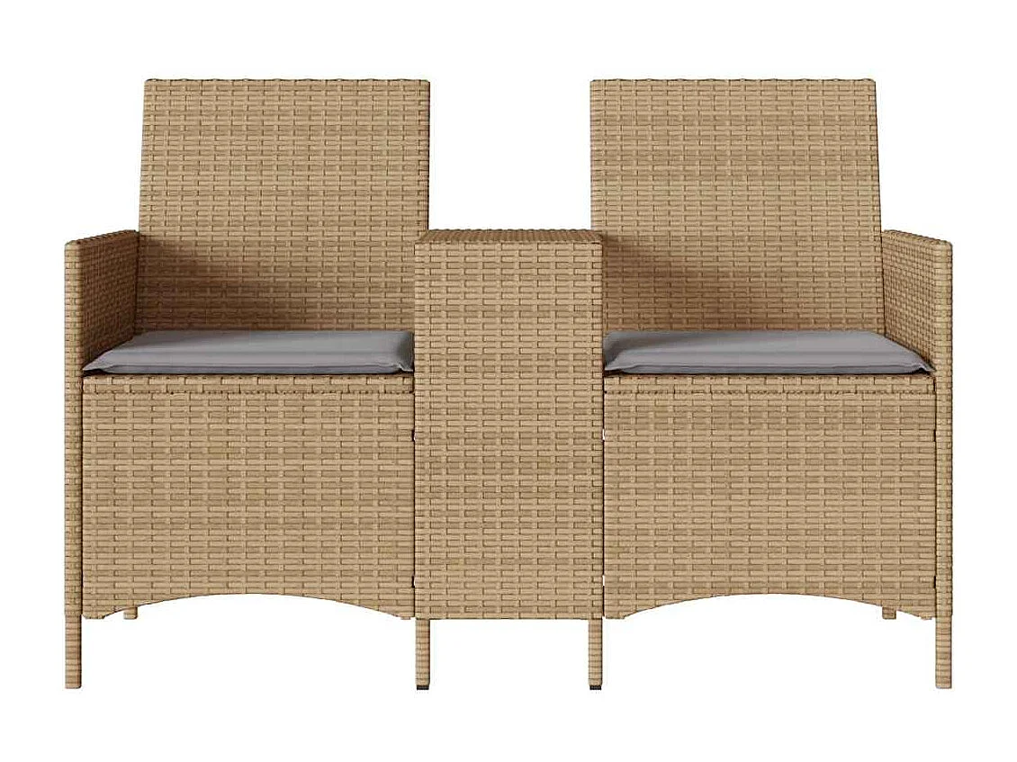Canapé de jardin 2 places avec table et coussins résine tressée