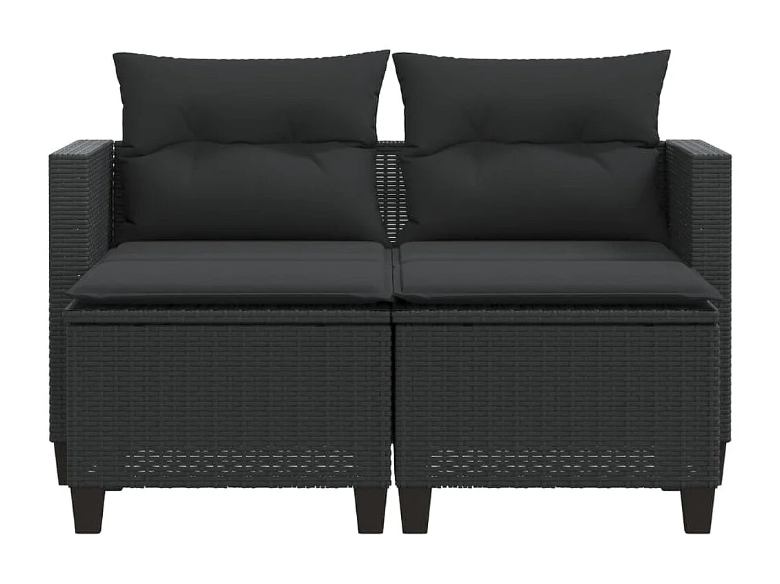 Canapé de jardin 2 places avec tabourets noir résine tressée