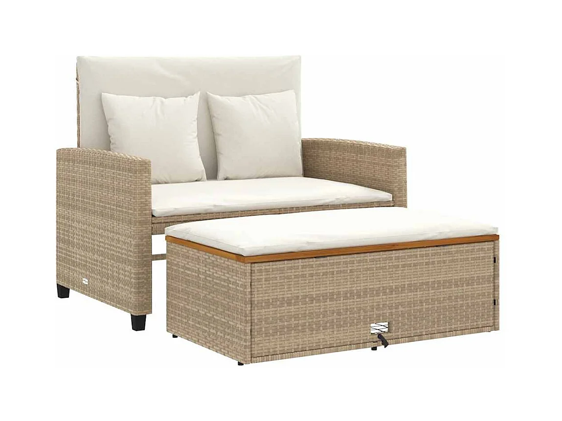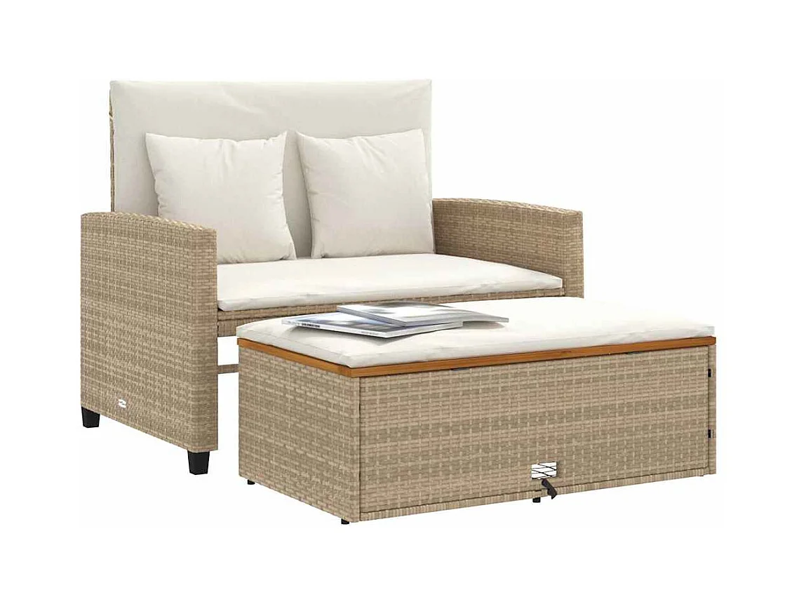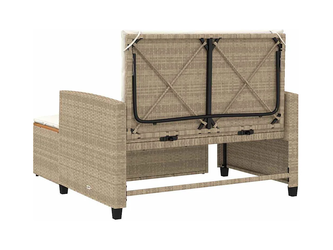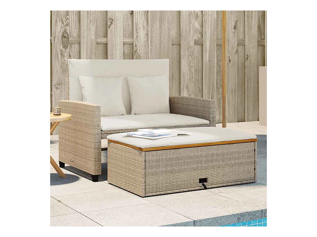Canapé de jardin 2 places coussins beige résine tressée&acacia
