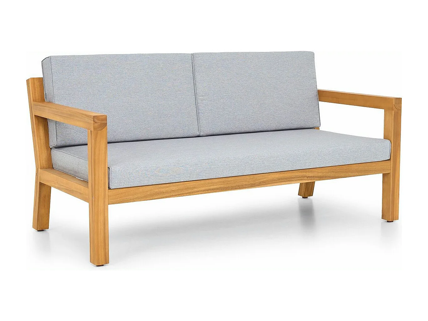 Canapé de jardin 2 places en bois FSC - coussins gris chiné - Palau