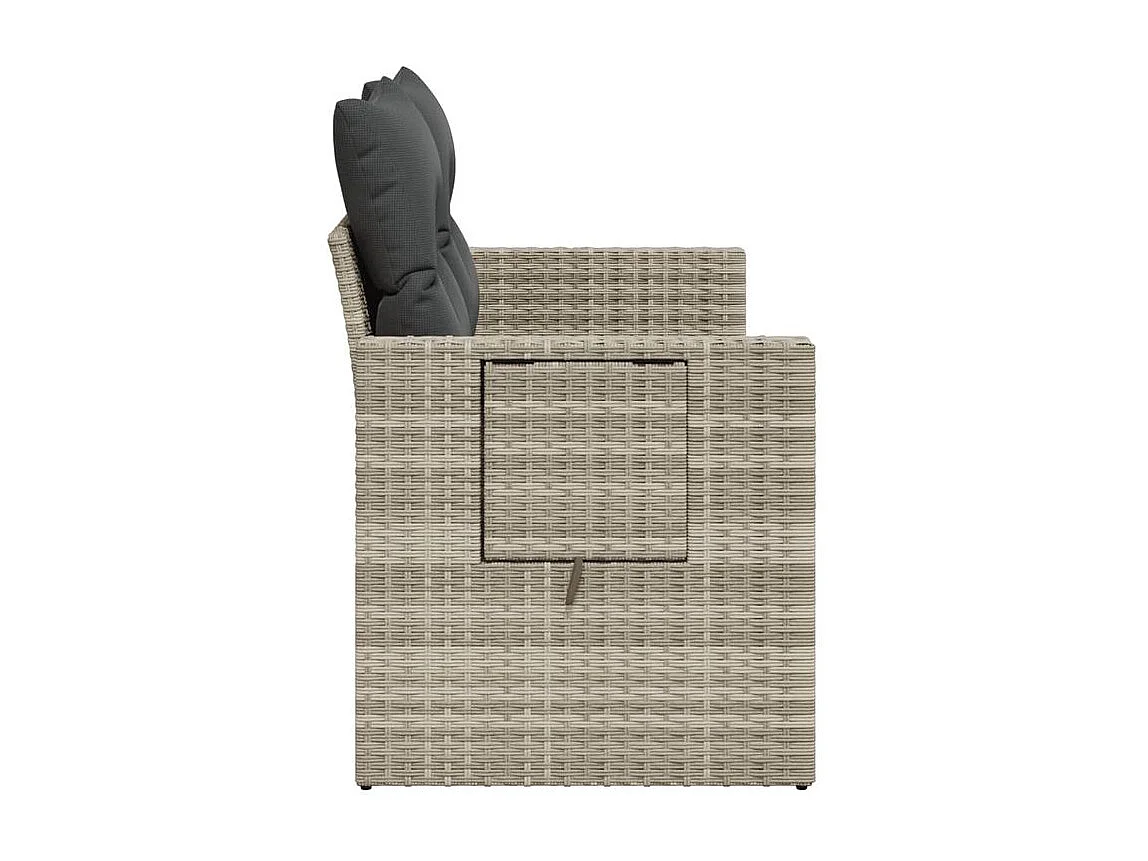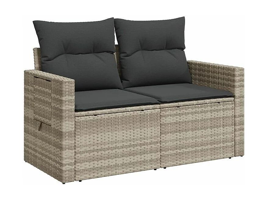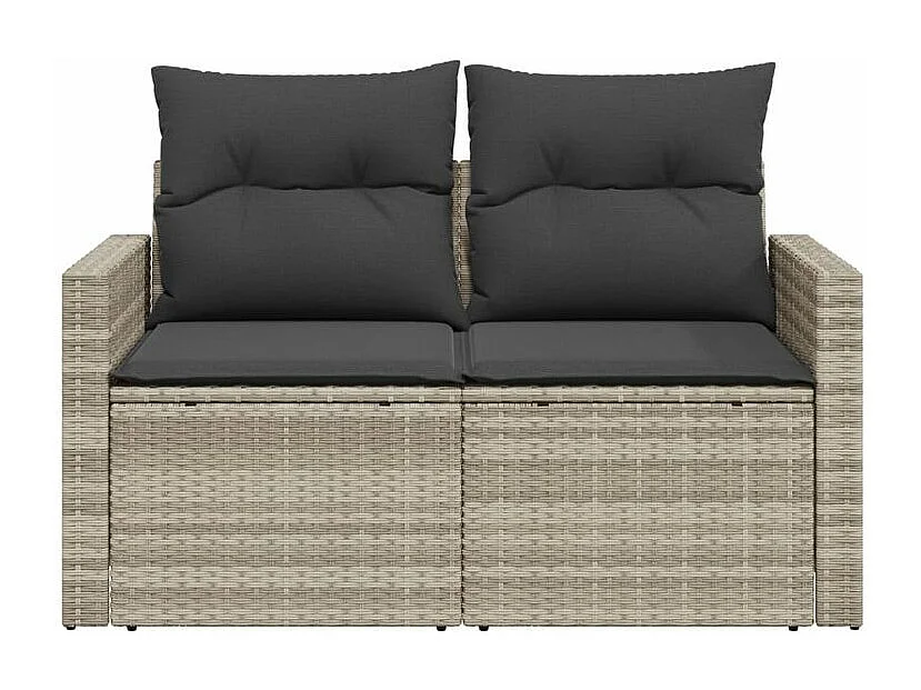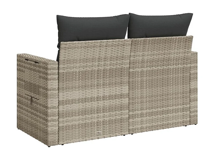 Canapé de jardin 2 places et coussins gris clair résine tressée