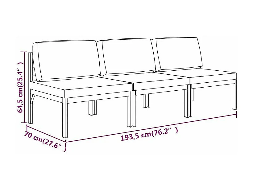Canapé de jardin 3 places avec coussins Aluminium Anthracite