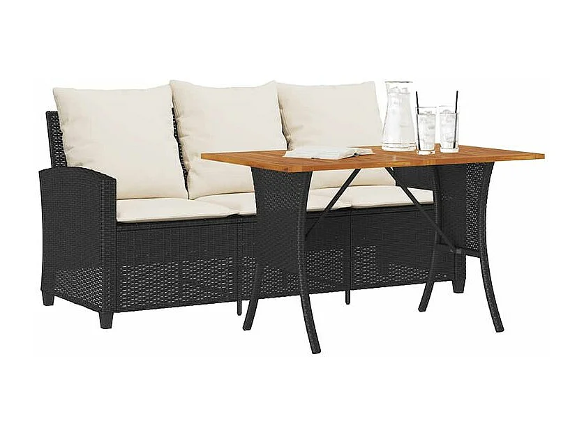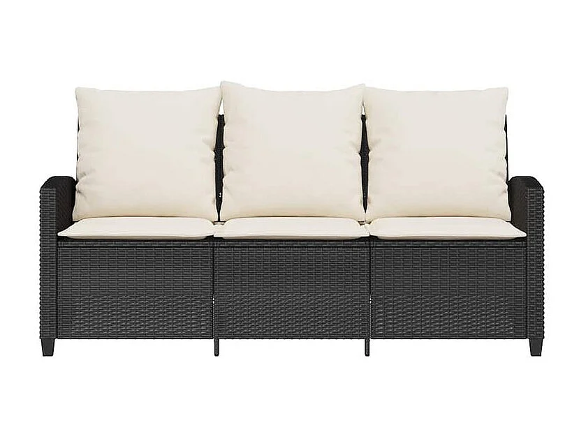 Canapé de jardin 3 places coussins et table noir résine tressée