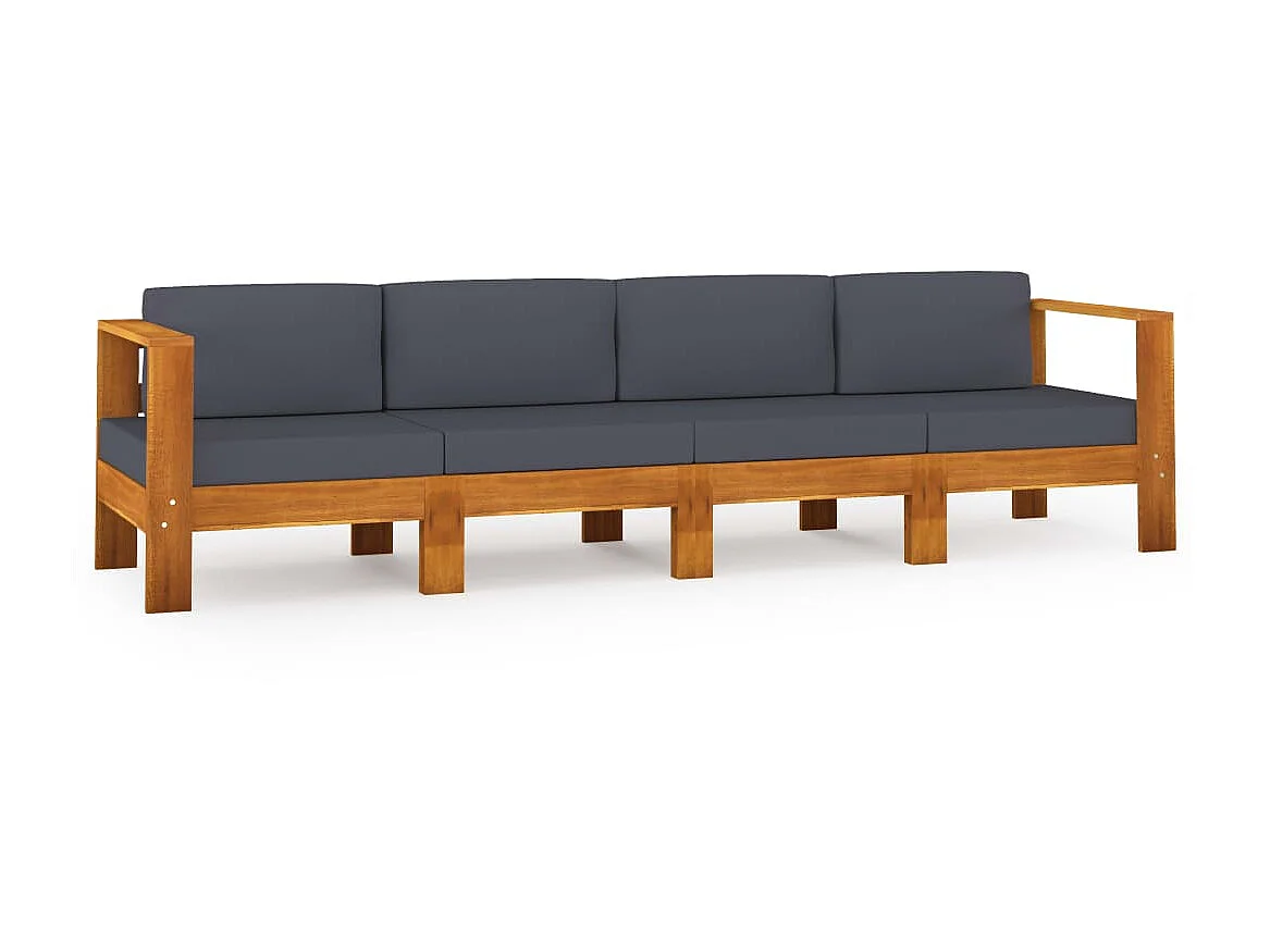 Canapé de jardin 4 places et coussins gris foncé Acacia massif