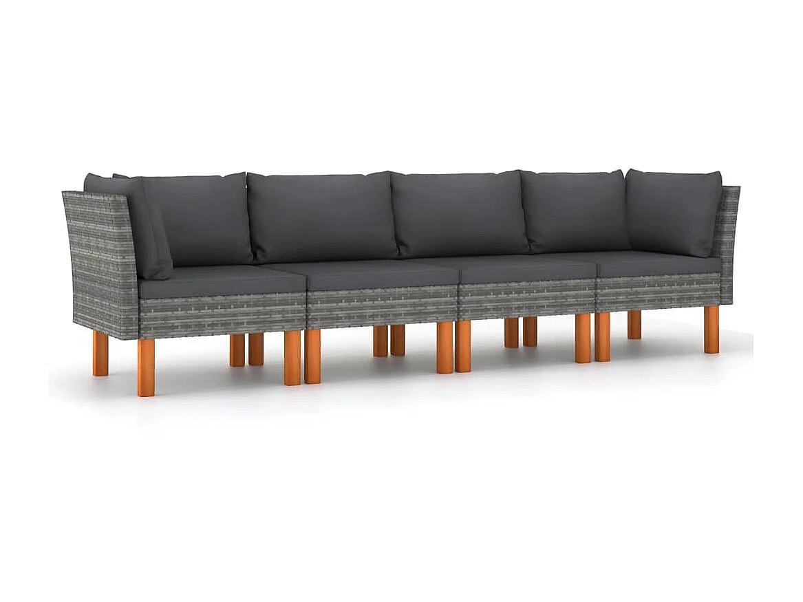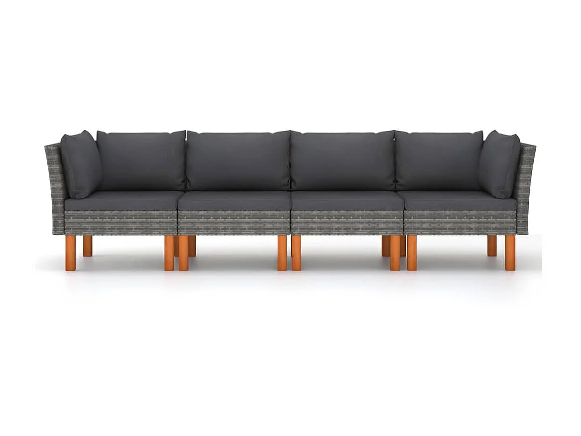Canapé de jardin à 4 places avec coussins Gris Résine tressée