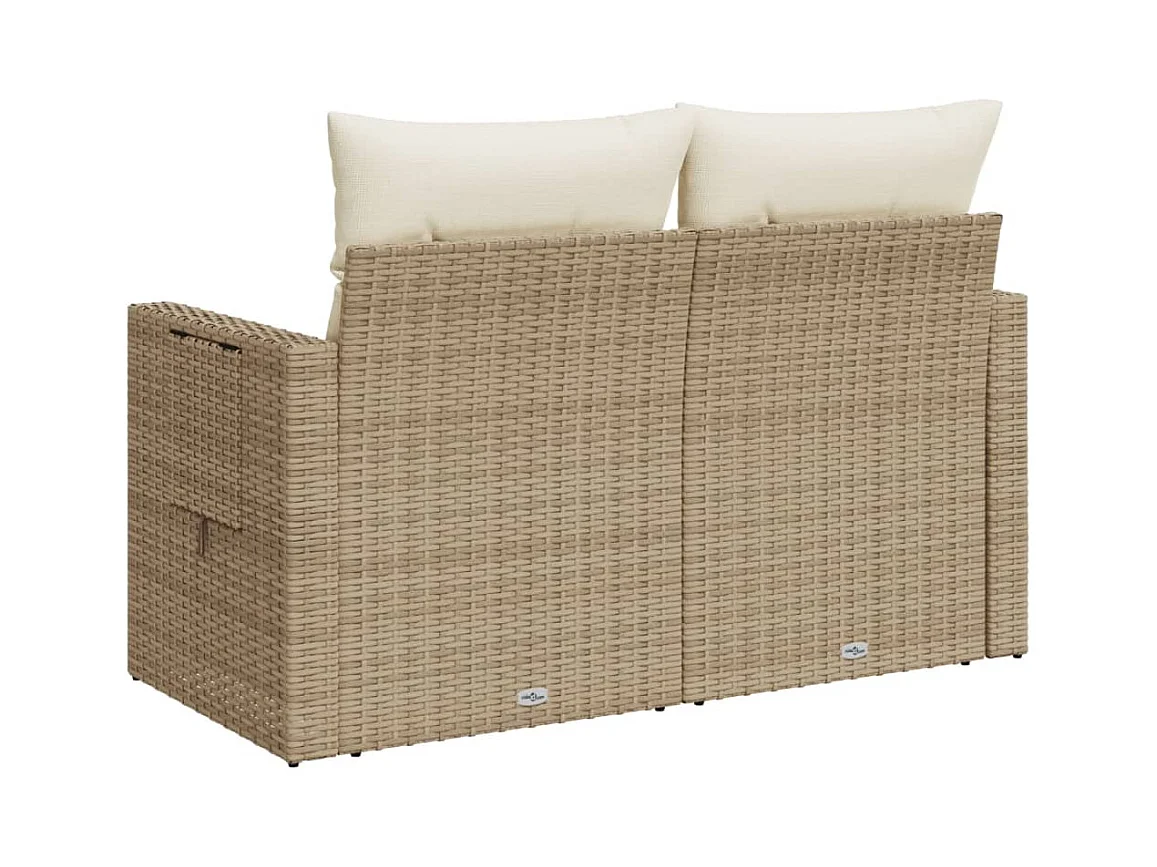 Canapé de jardin avec coussins 2 places beige résine tressée