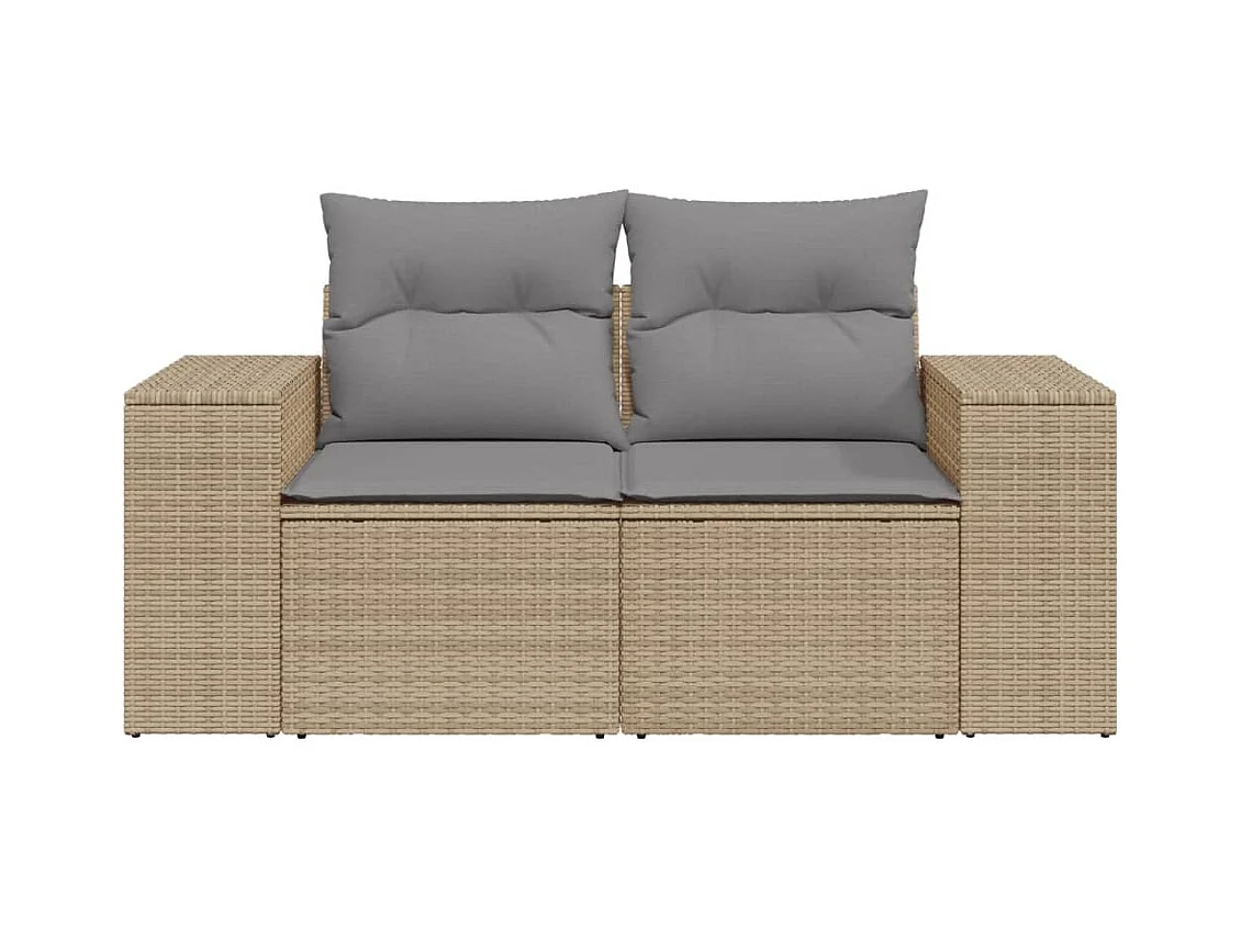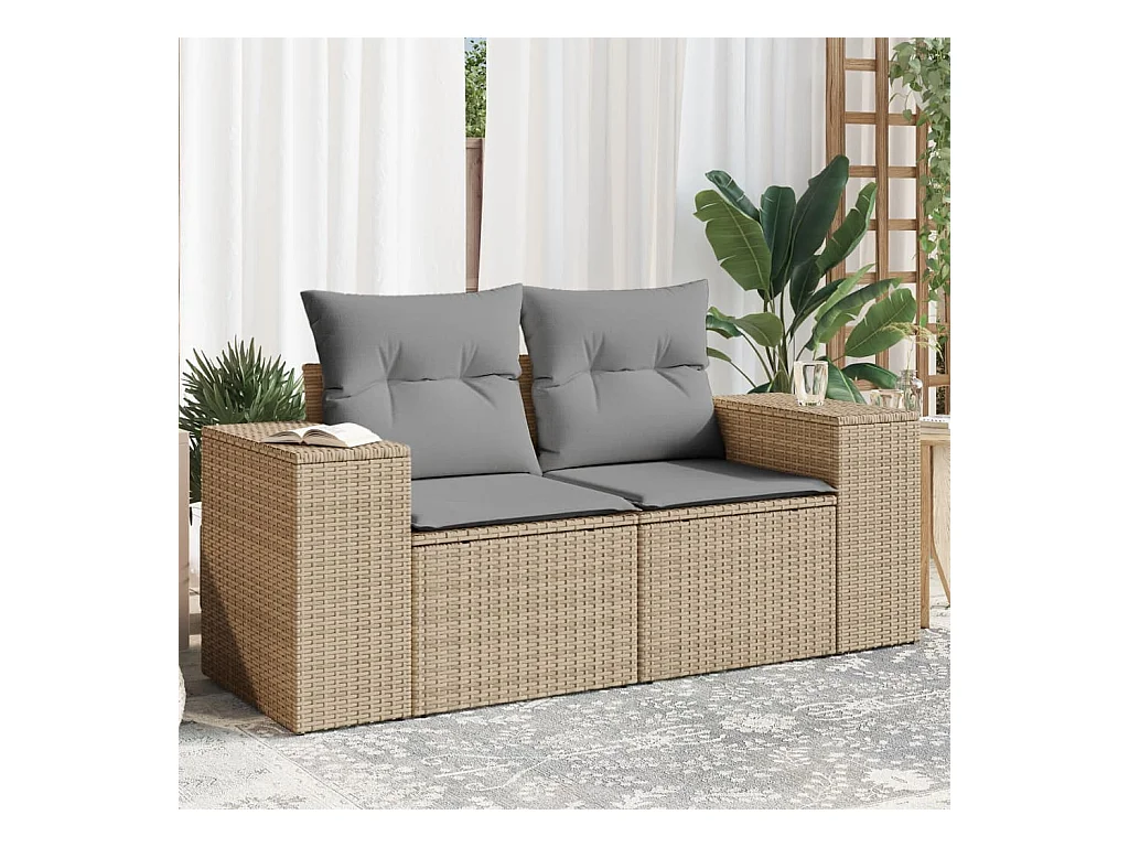 Canapé de jardin avec coussins 2 places beige résine tressée REO30702
