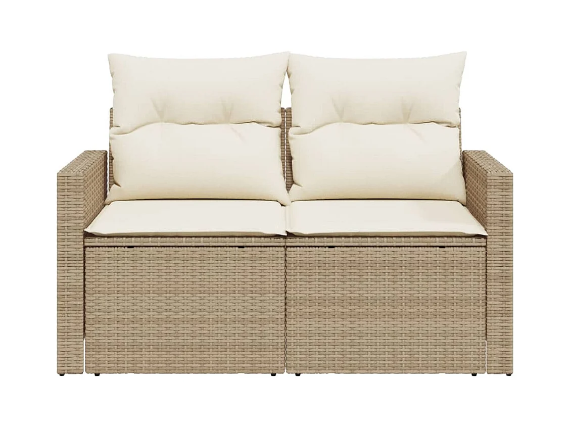 Canapé de jardin avec coussins 2 places beige résine tressée REO39545
