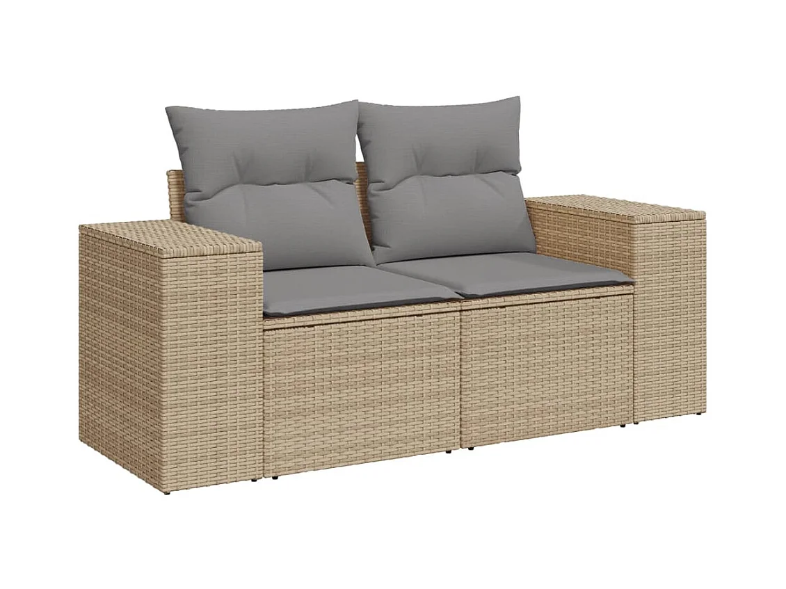 Canapé de jardin avec coussins 2 places beige résine tressée REO39741