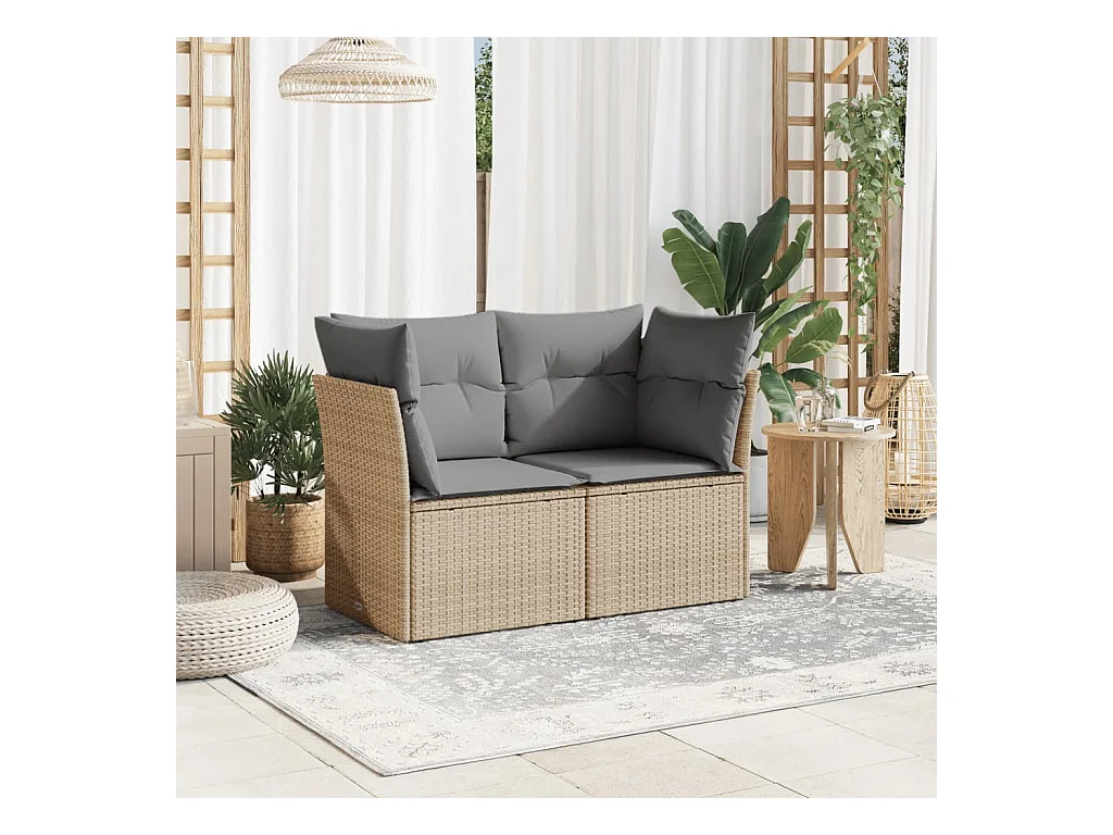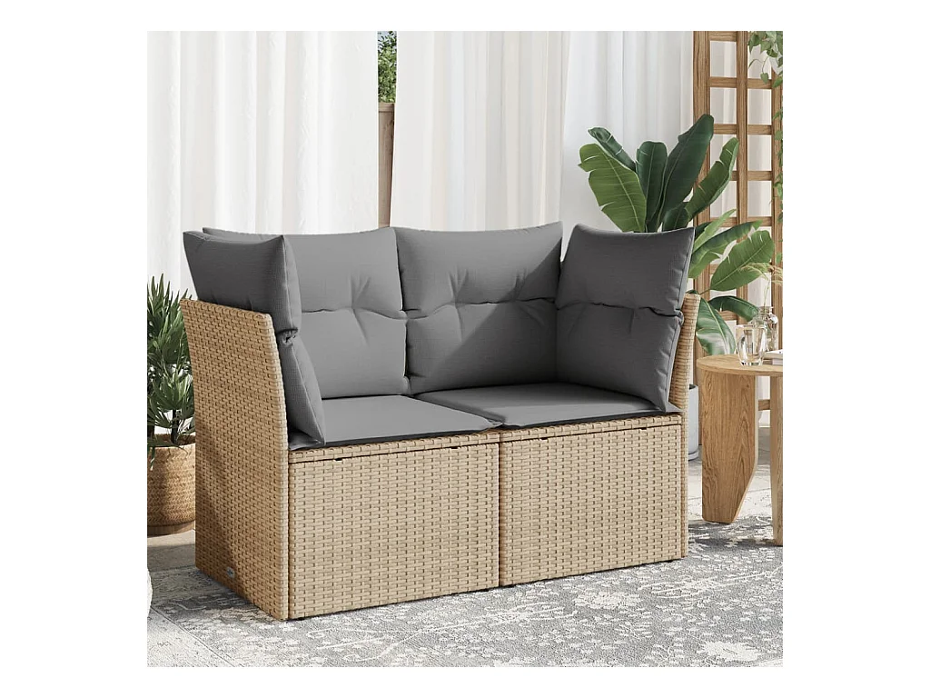 Canapé de jardin avec coussins 2 places beige résine tressée REO40849