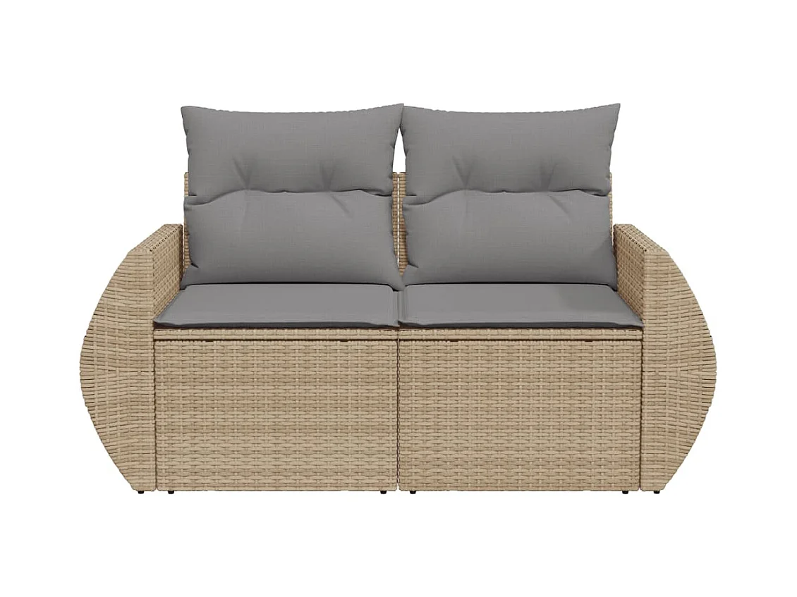 Canapé de jardin avec coussins 2 places beige résine tressée REO64806