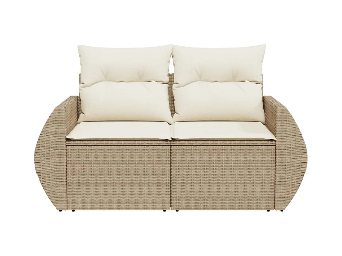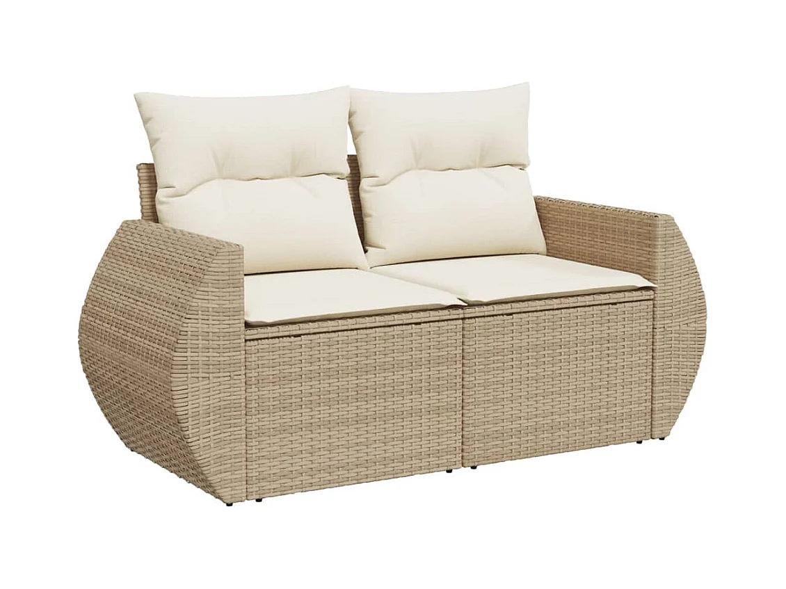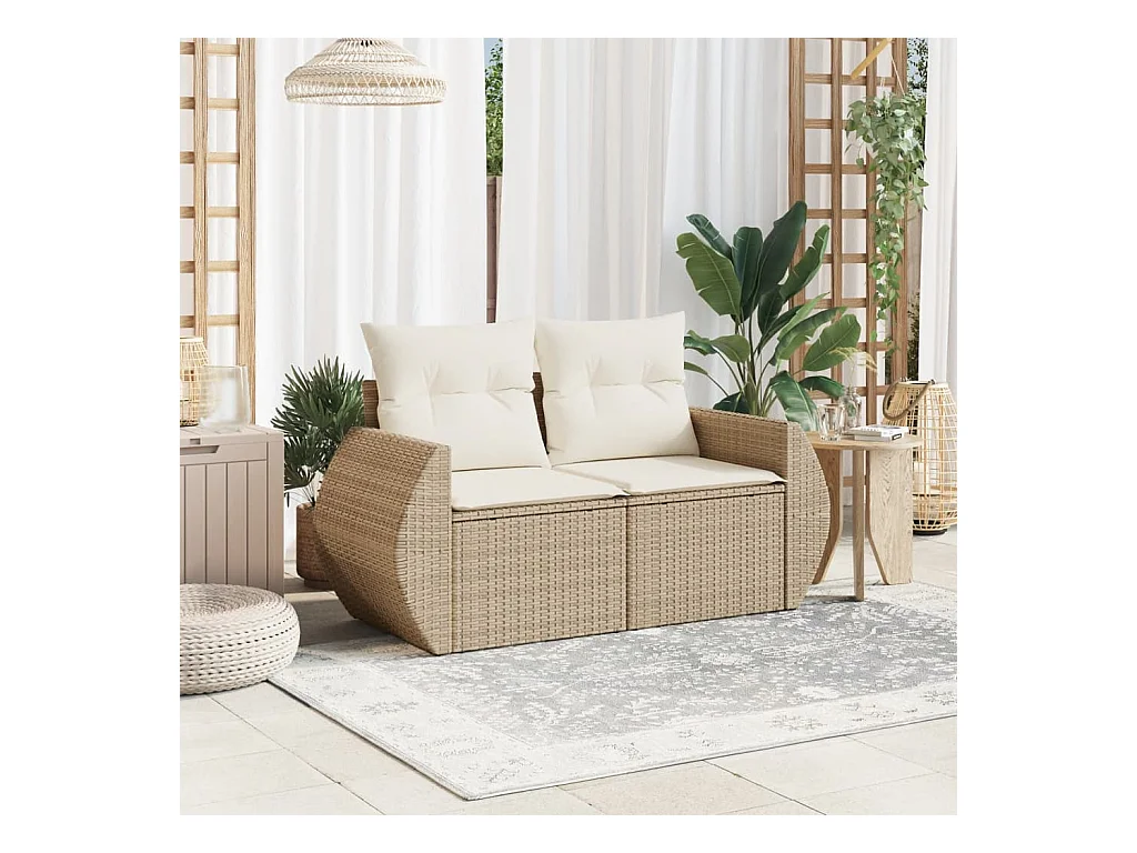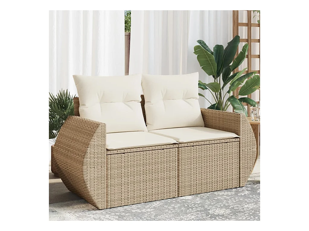 Canapé de jardin avec coussins 2 places beige résine tressée REO76043