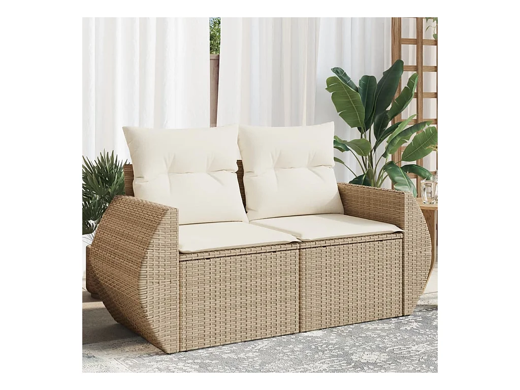 Canapé de jardin avec coussins 2 places beige résine tressée REO97980