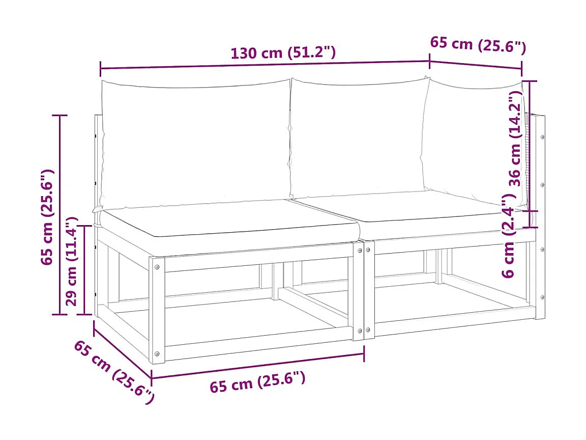 Canapé de jardin avec coussins 2 places Bois Acacia et rotin