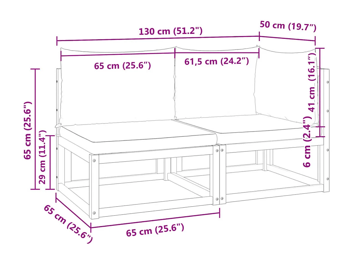Canapé de jardin avec coussins 2 places Bois Acacia et rotin