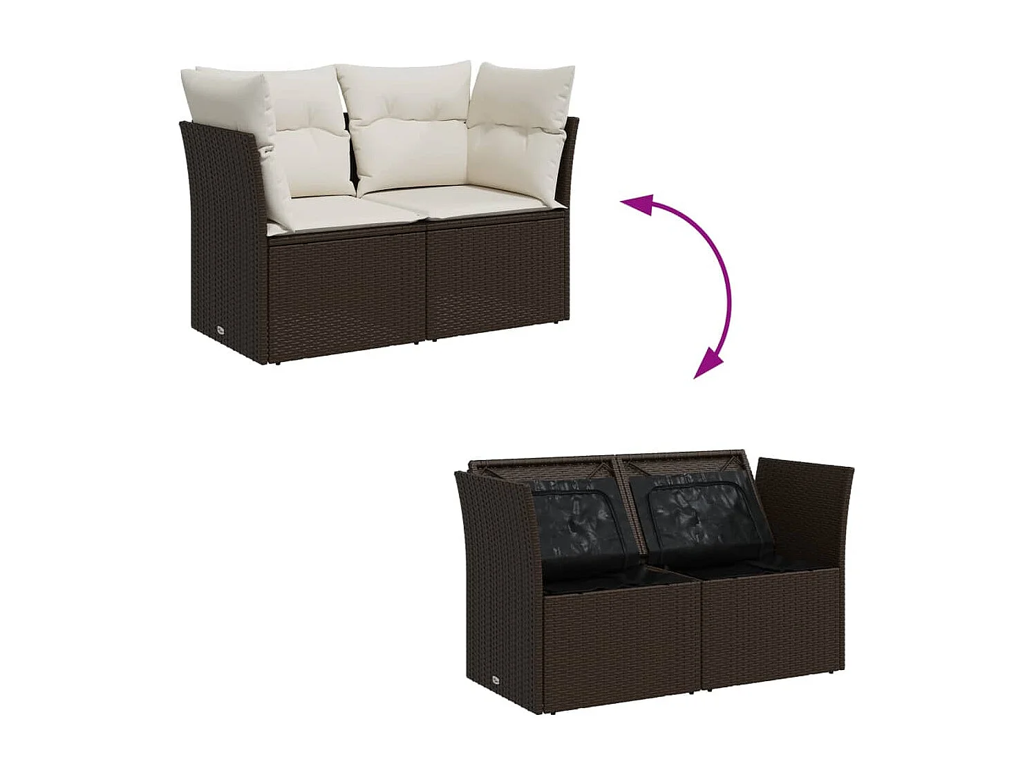 Canapé de jardin avec coussins 2 places marron résine tressée