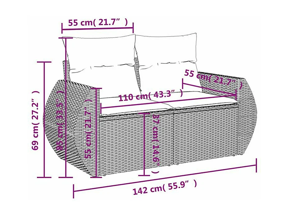 Canapé de jardin avec coussins 2 places marron résine tressée
