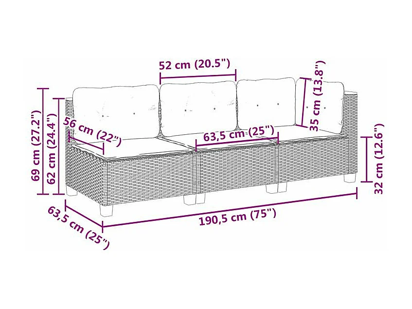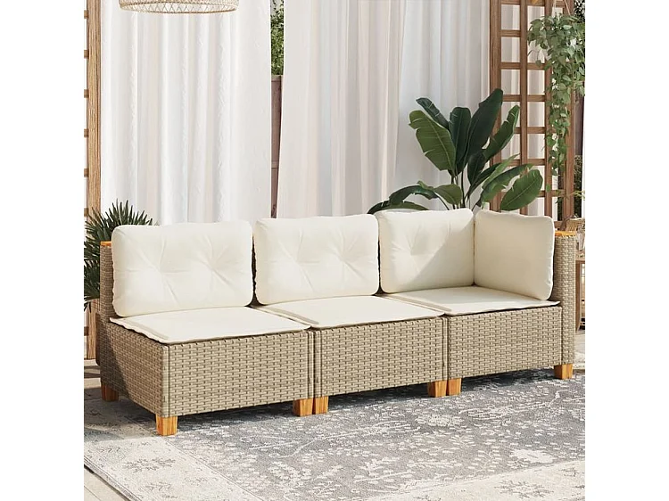 Canapé de jardin avec coussins 3 places beige résine tressée