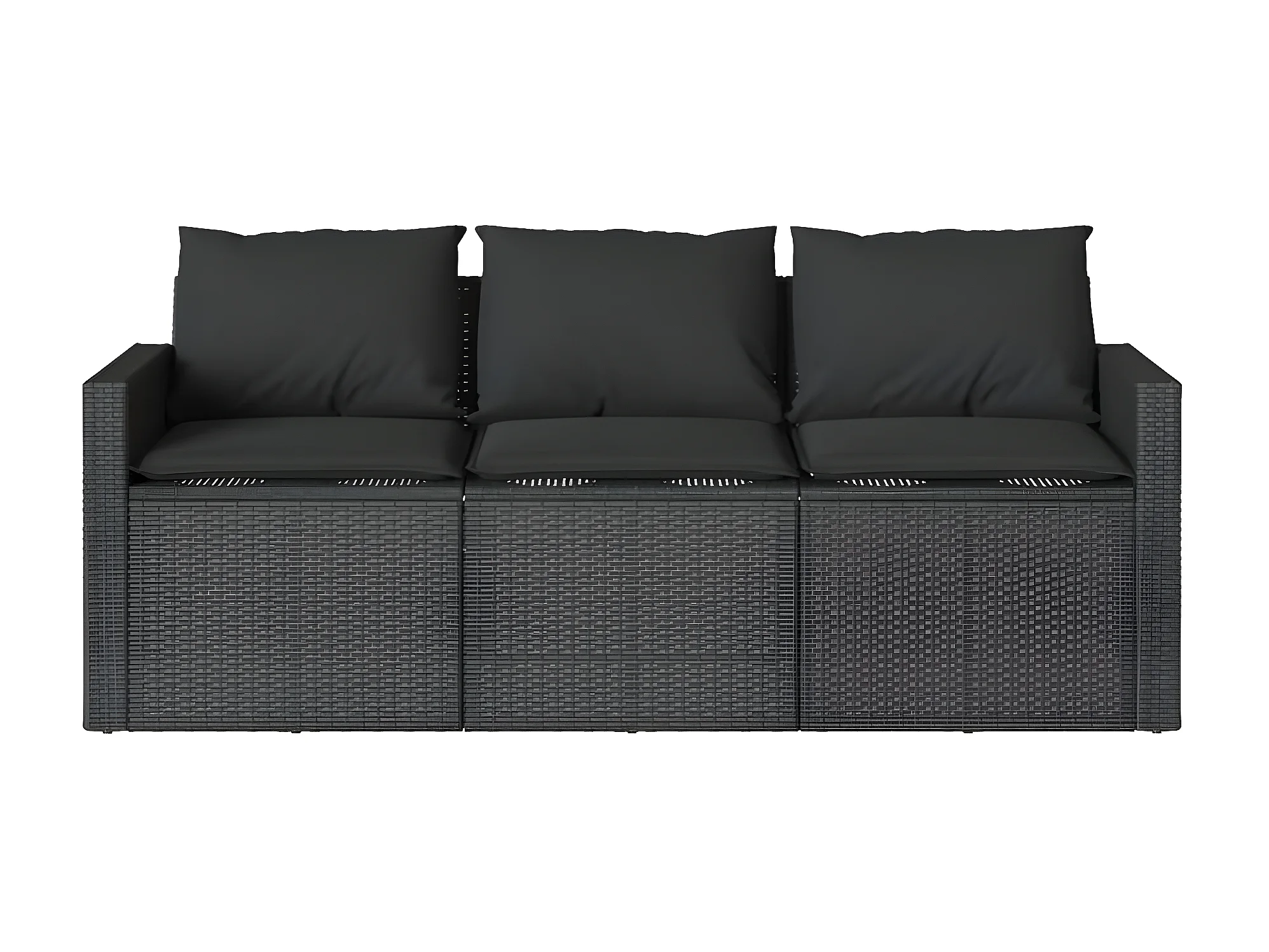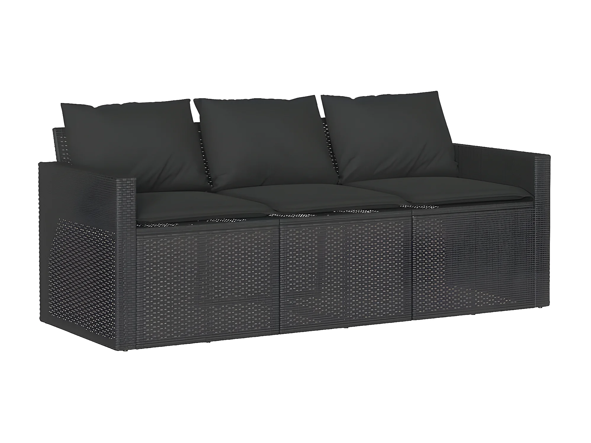 Canapé de jardin avec coussins 3 places noir résine tressée