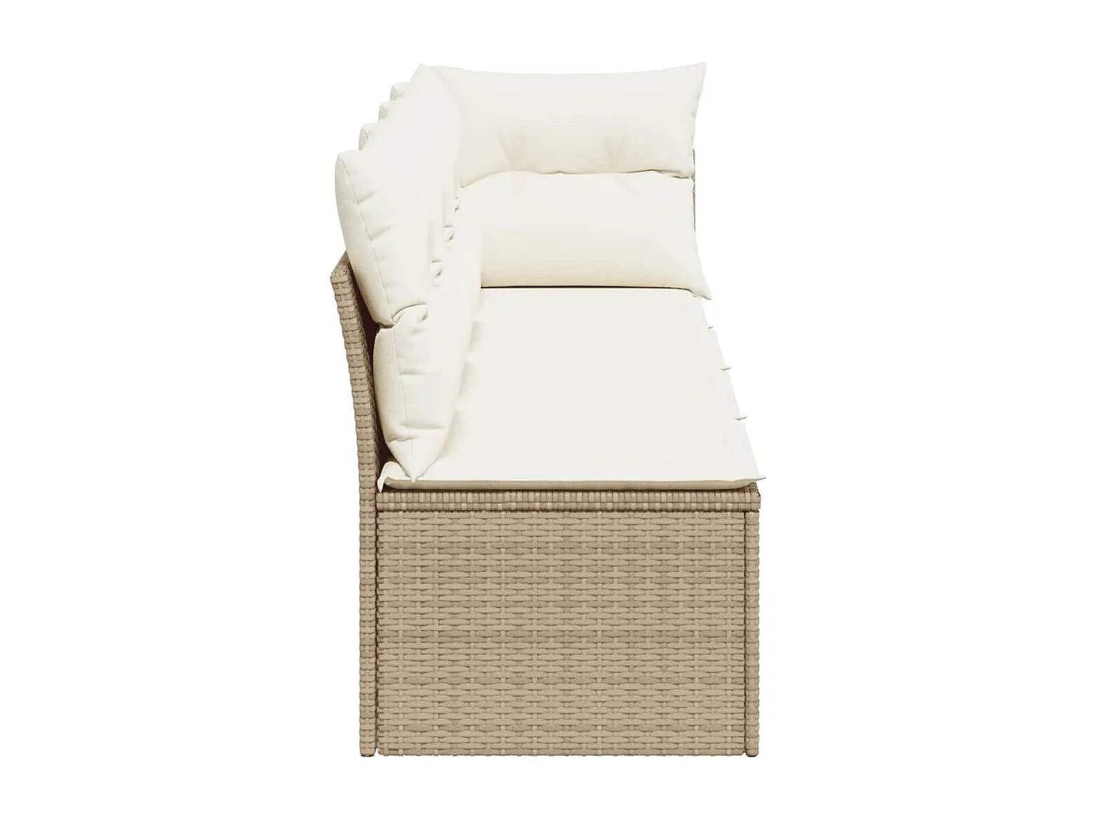 Canapé de jardin avec coussins 4 places beige résine tressée