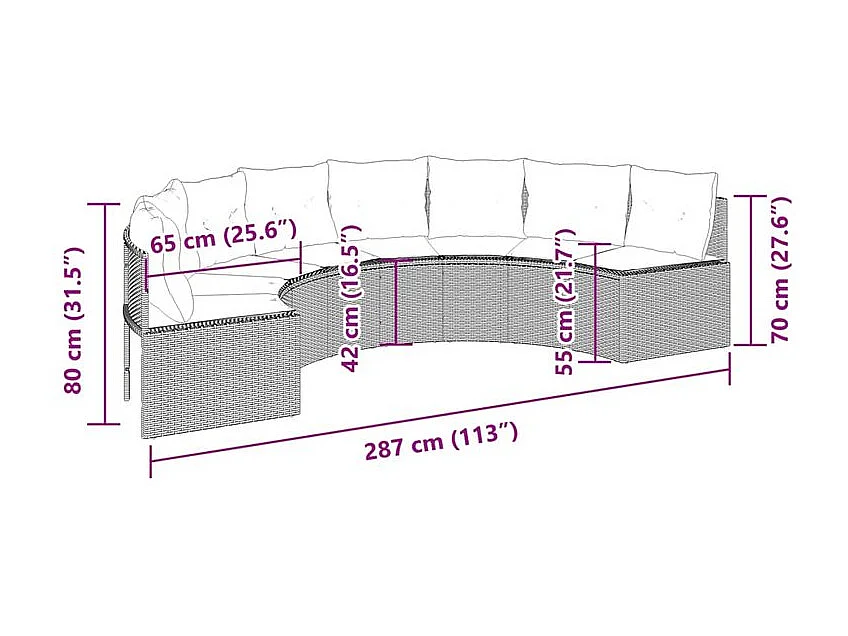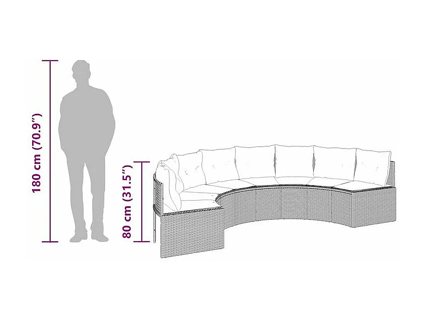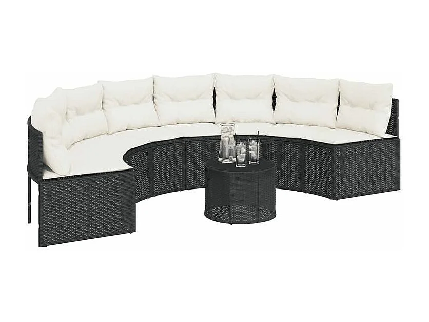 Canapé de jardin avec coussins demi-rond noir résine tressée