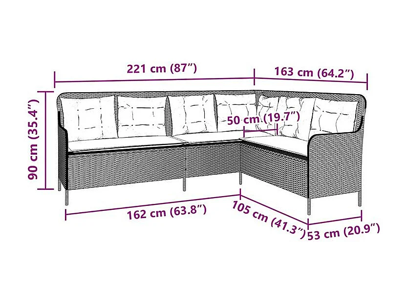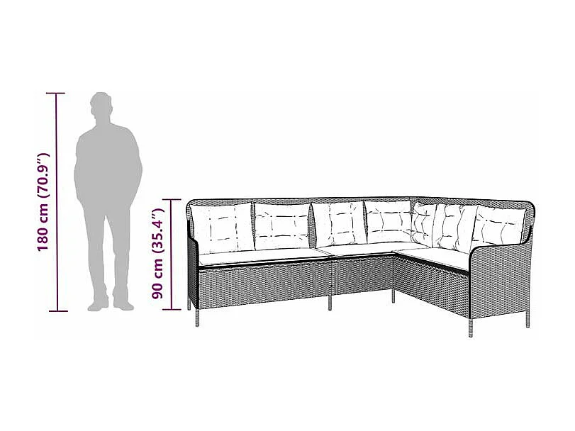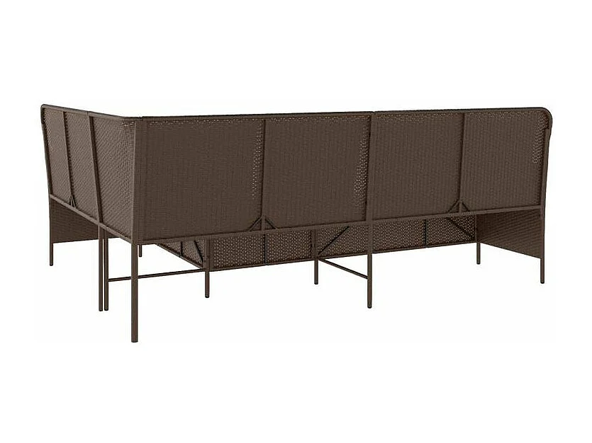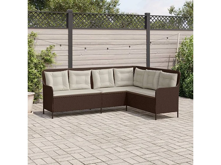 Canapé de jardin avec coussins forme de L marron résine tressée