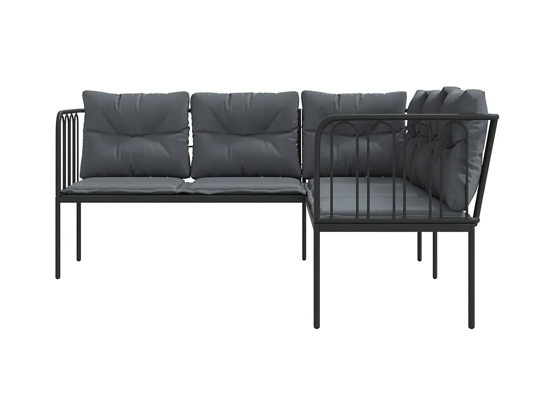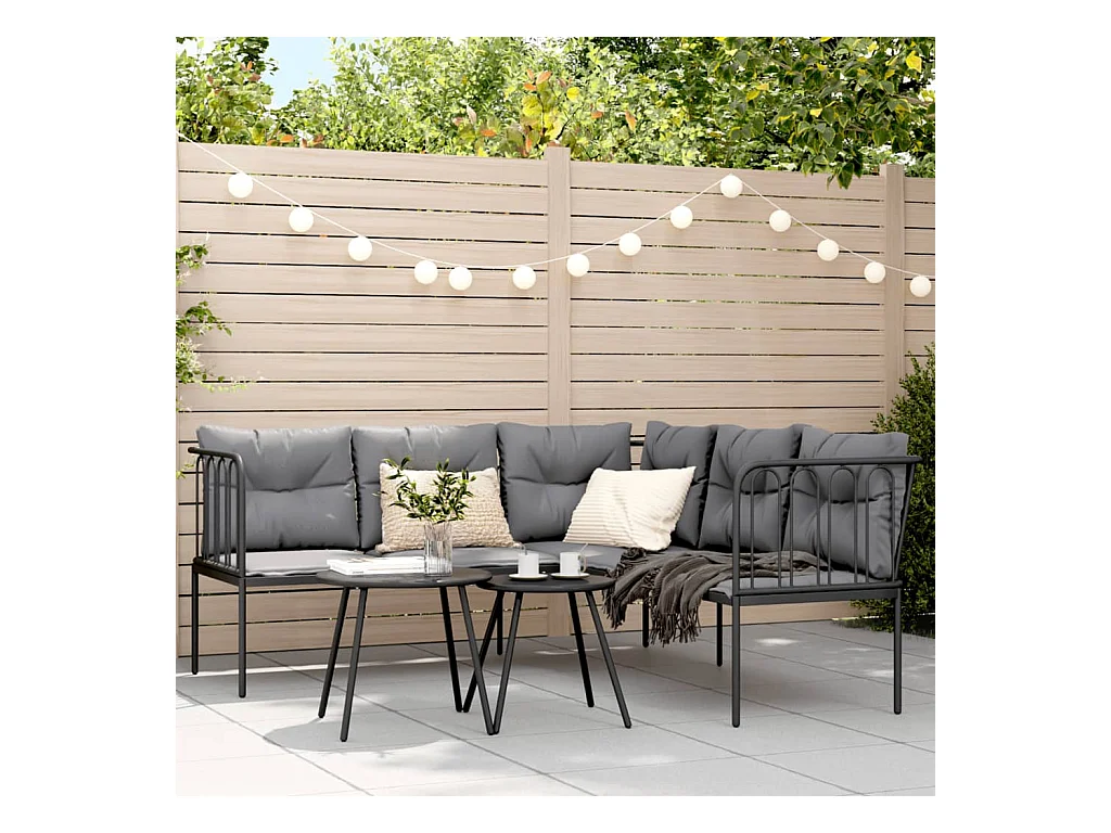 Canapé de jardin avec coussins forme de L noir acier textilène FR824889