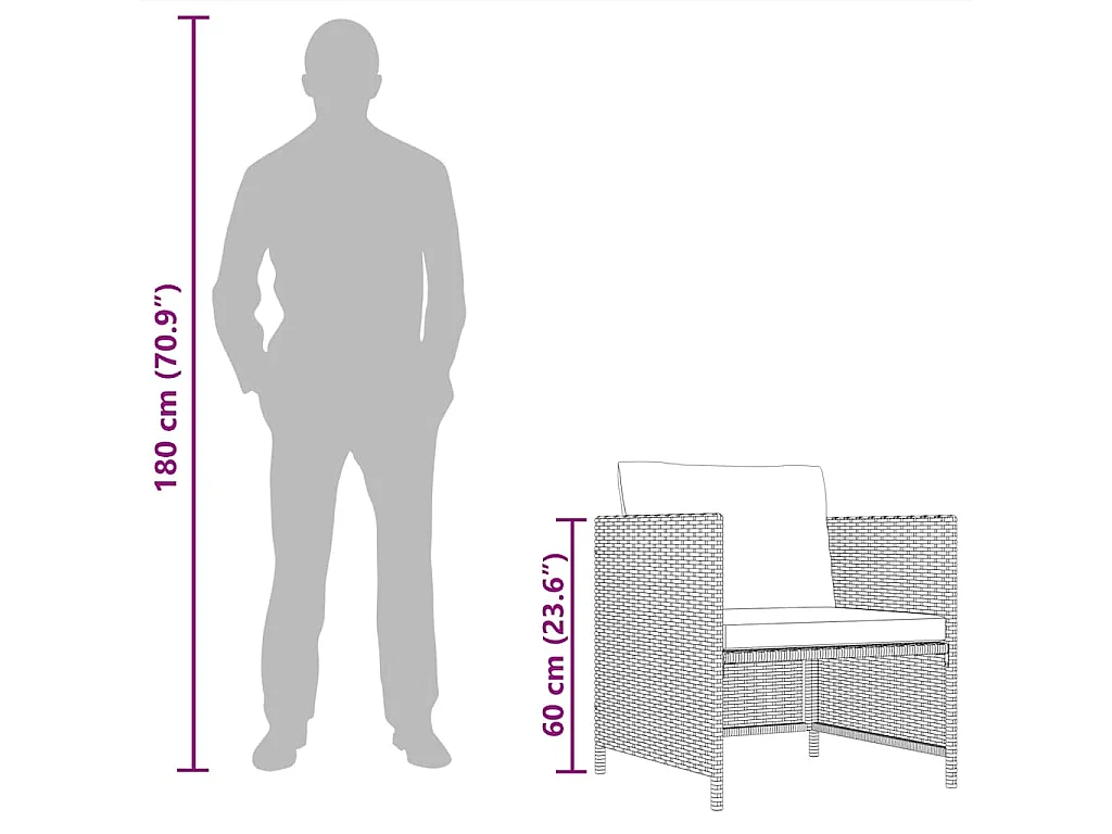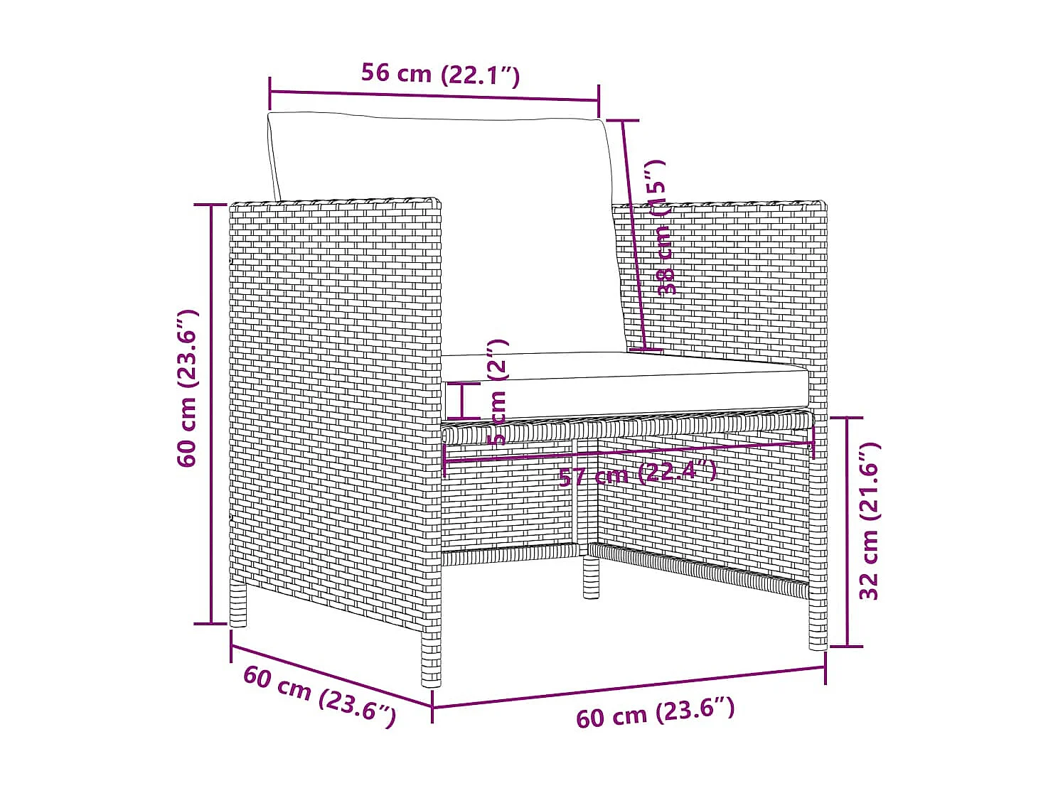 Canapé central de jardin avec coussin gris foncé résine tressée