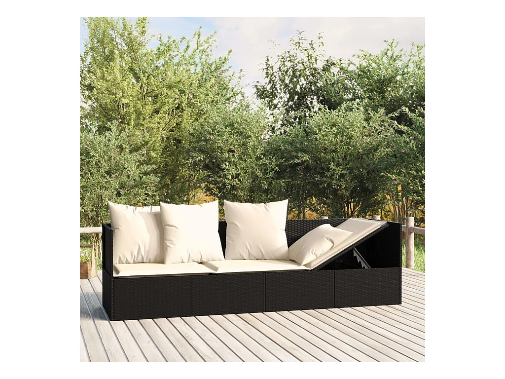 Canapé de jardin avec coussins Noir Résine tressée PEWV70582
