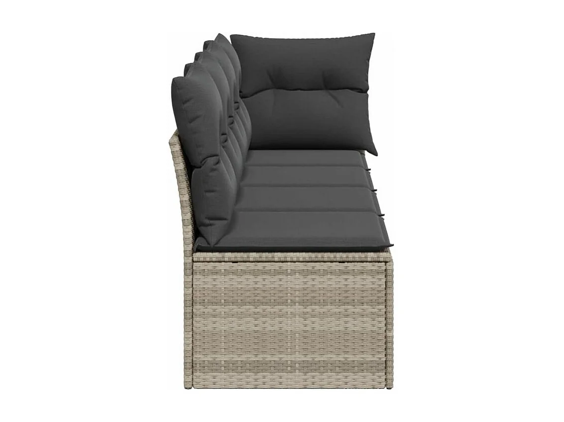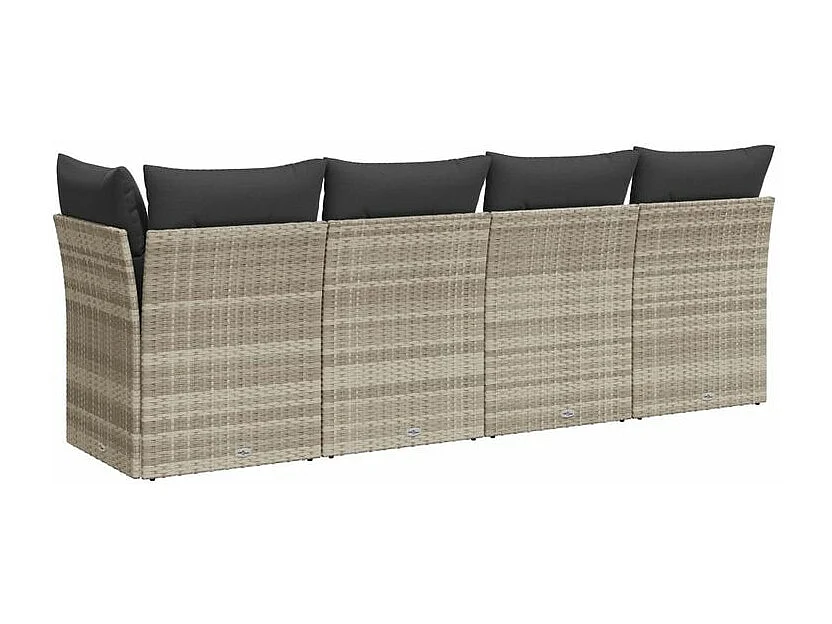 Canapé de jardin et coussins 4 places gris clair résine tressée