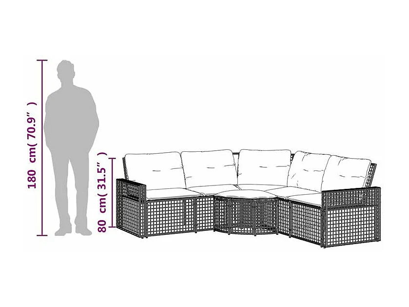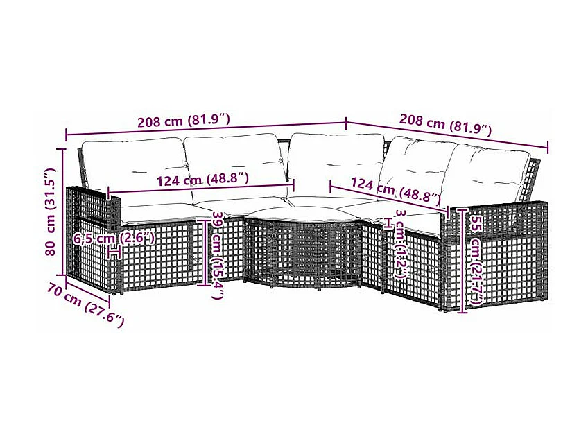 Canapé de jardin et coussins et repose-pied en forme de L rotin