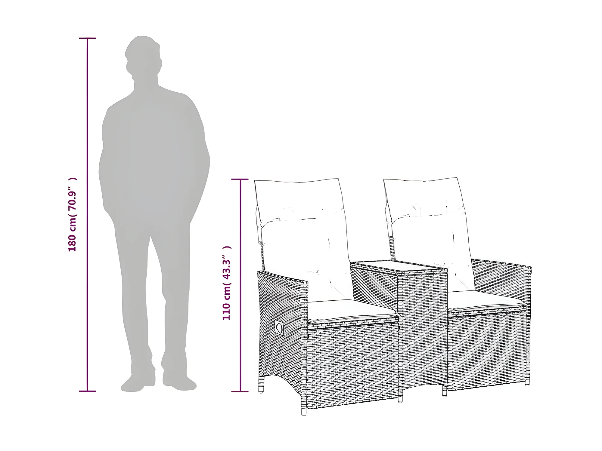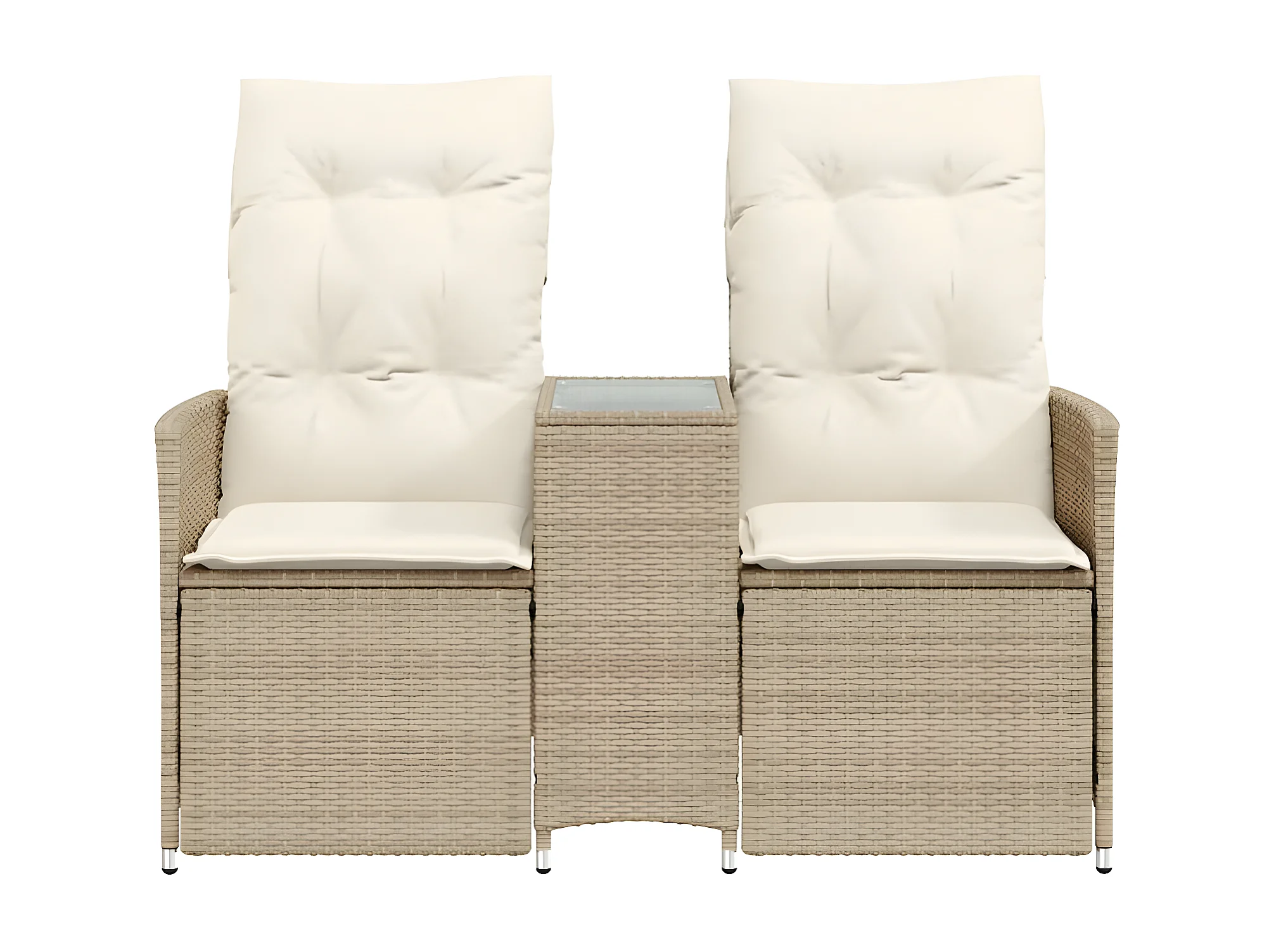 Canapé de jardin inclinable 2 places avec table beige rotin