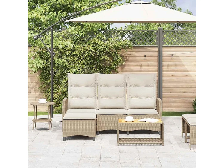 Canapé de jardin inclinable coussins forme de L beige polyrotin