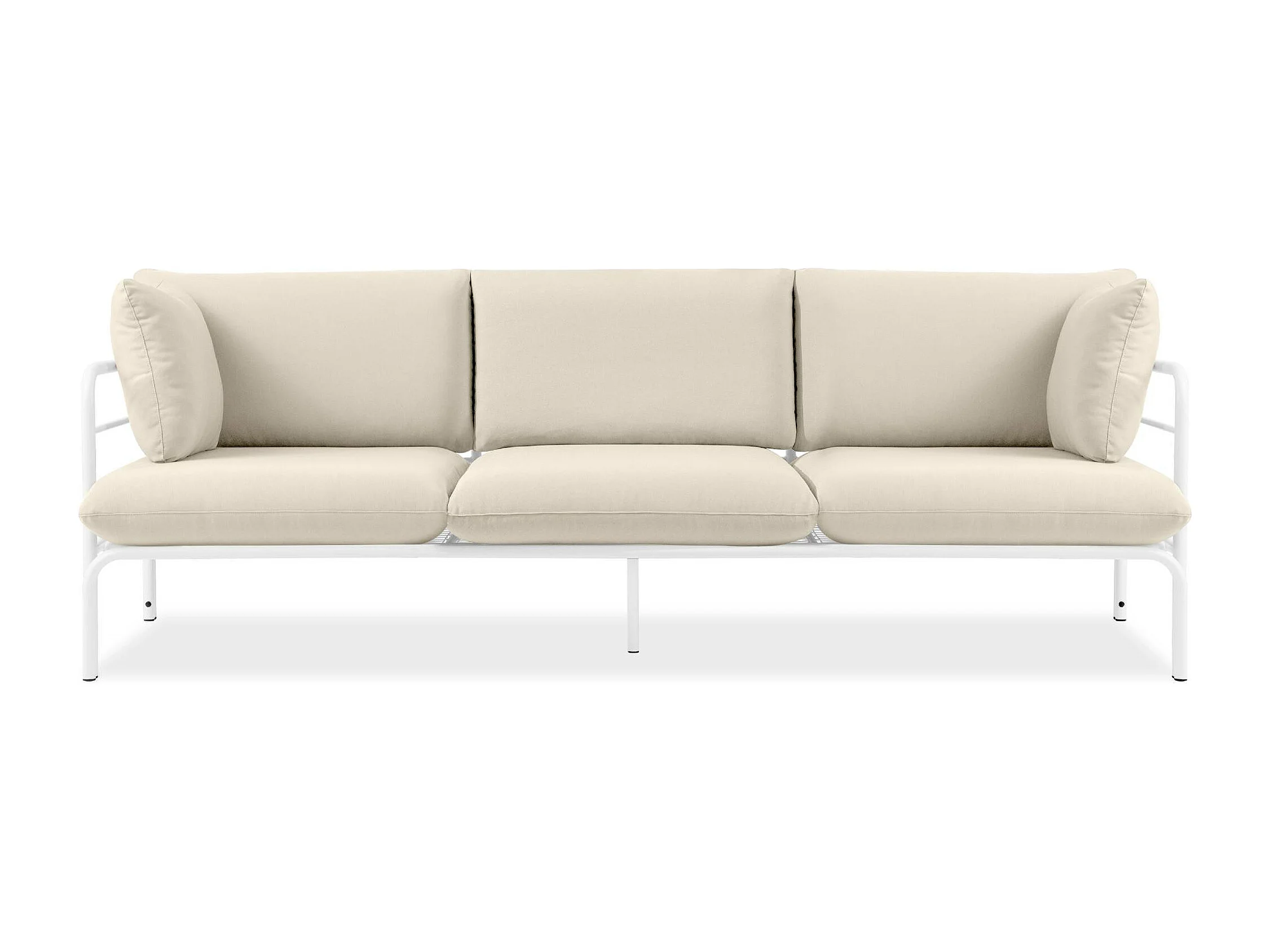 Canapé de jardin RAMBE blanc et blanc cassé, dimensions 225x80x80 cm, parfait pour grandes terrasses