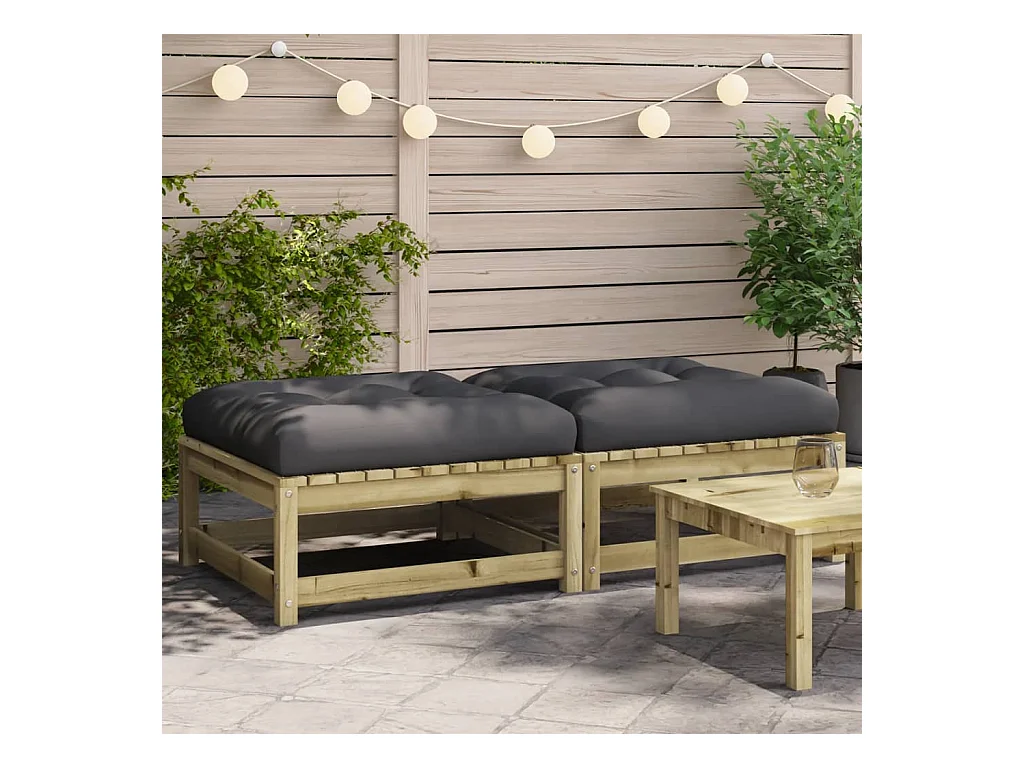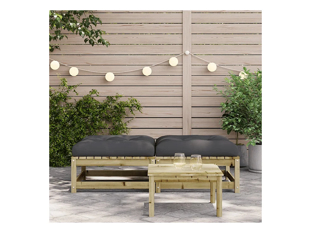 Canapé de jardin - Repose-pieds de jardin avec coussins 2 pcs bois de pin imprégné FR42204