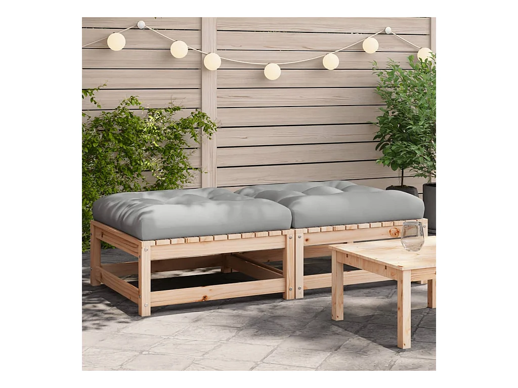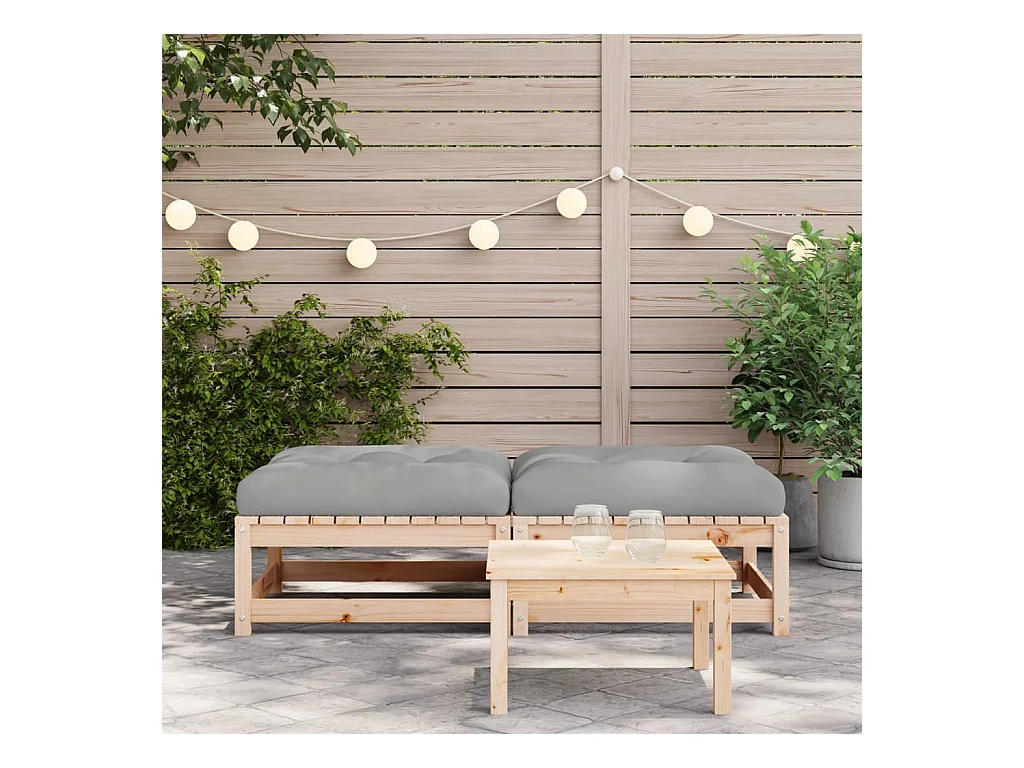 Canapé de jardin - Repose-pieds de jardin avec coussins 2 pcs bois de pin massif FR52087