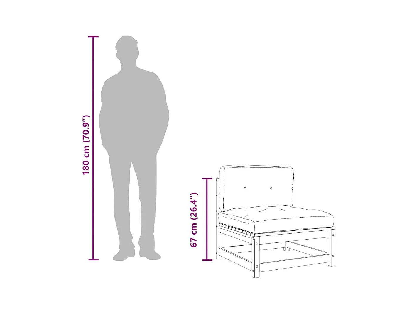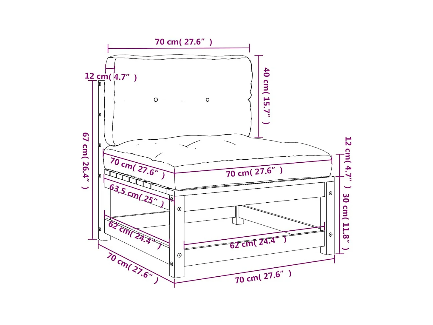 Canapé de jardin sans accoudoirs 70x70x67 cm bois pin imprégné
