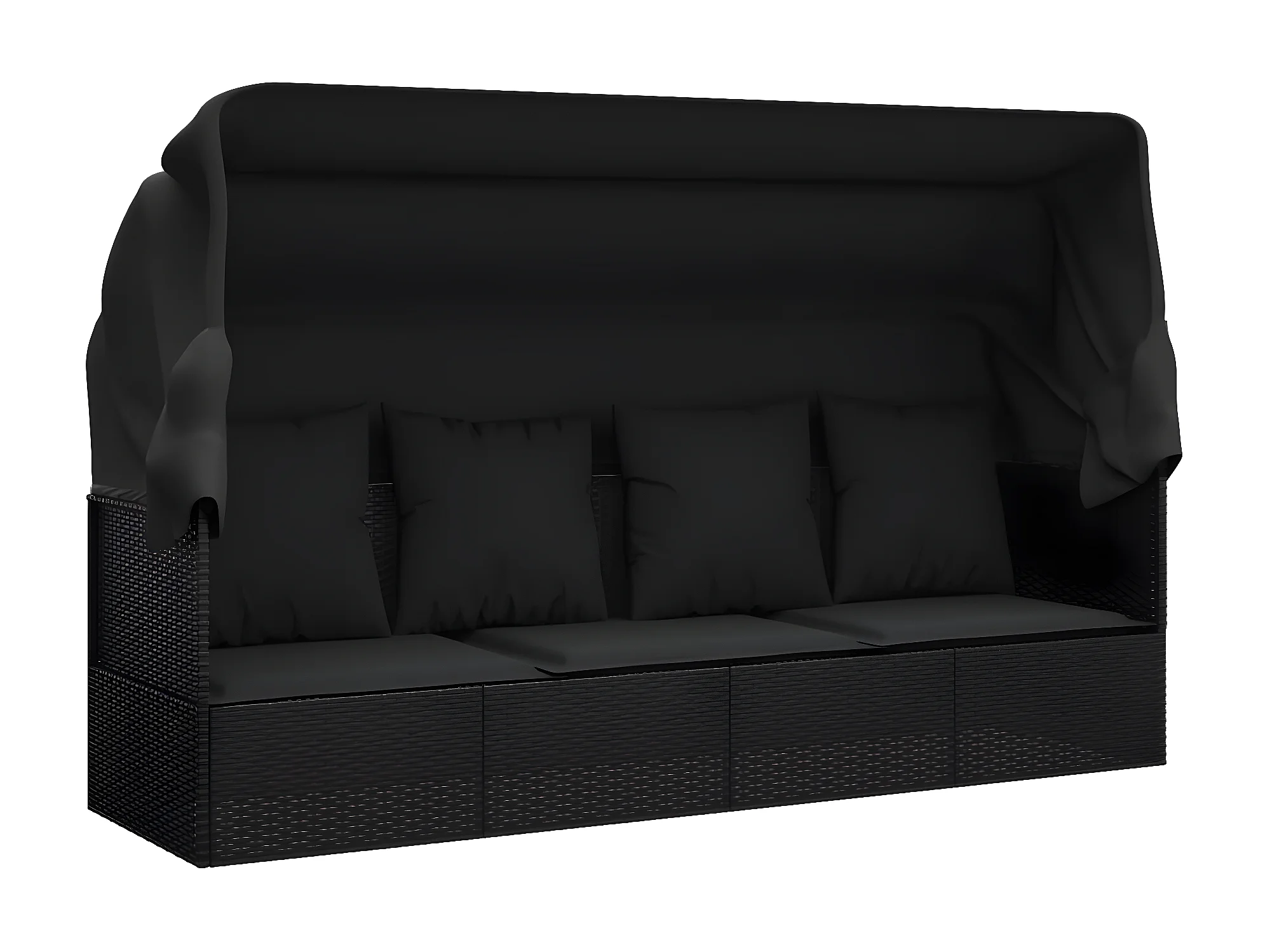 Canapé de jardin toit et coussins Noir Résine tressée PEWV11338
