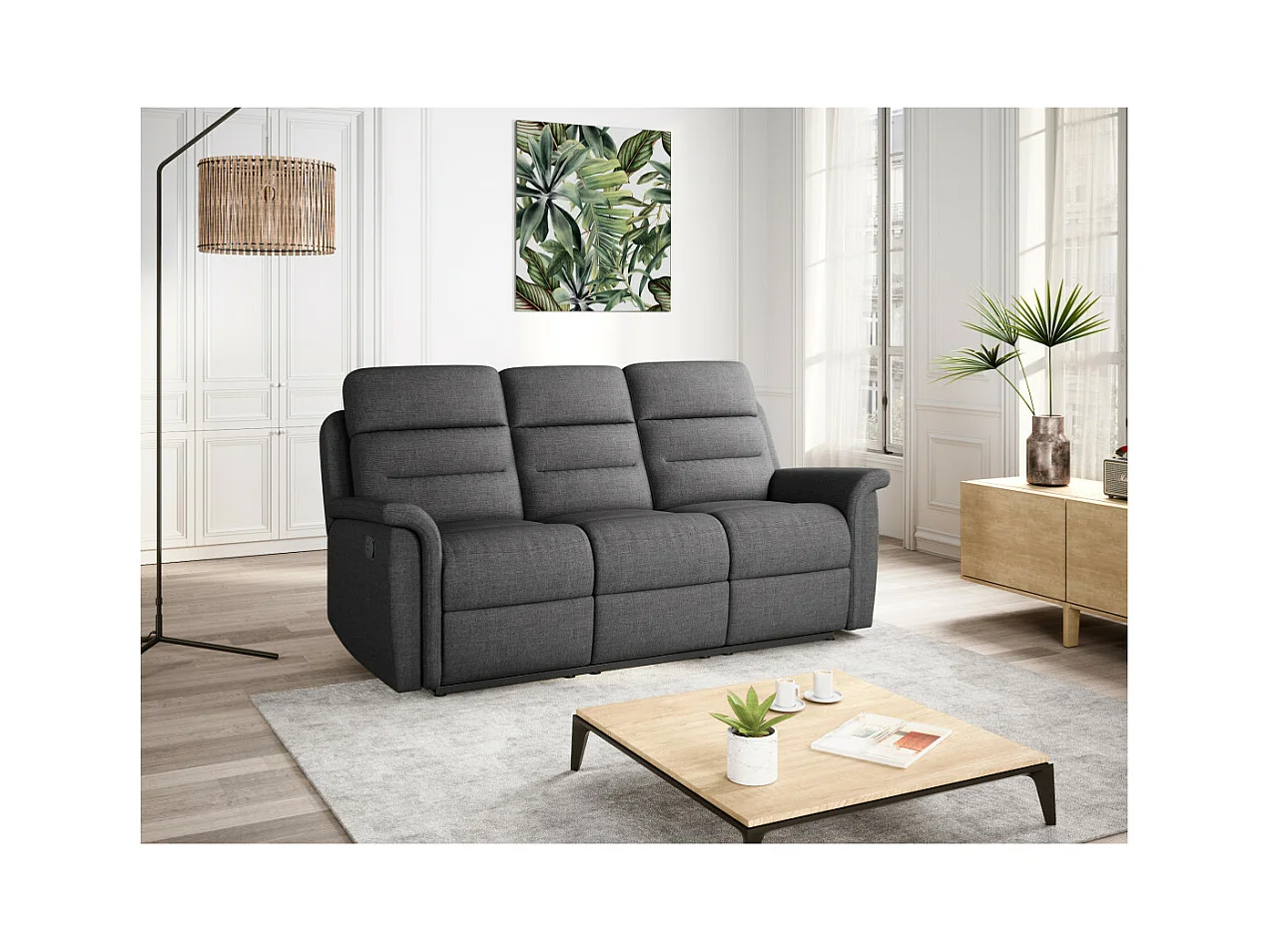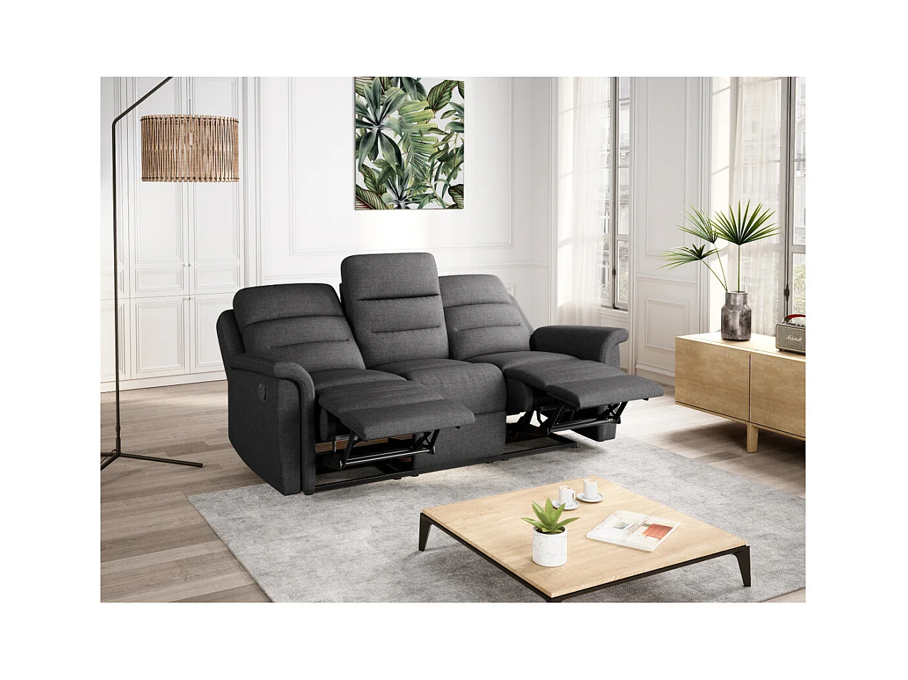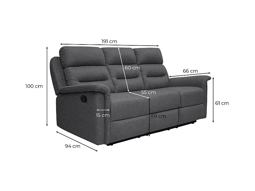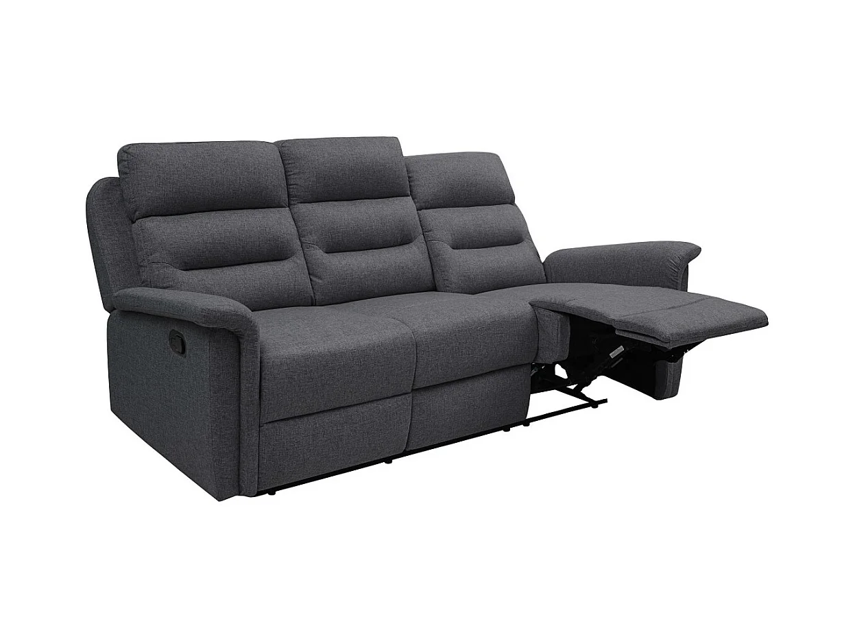 Canapé de Relaxation 3 places en Tissu Gris Léon - Gris anthracite - L191 x 94 x 100cm - Loungitude