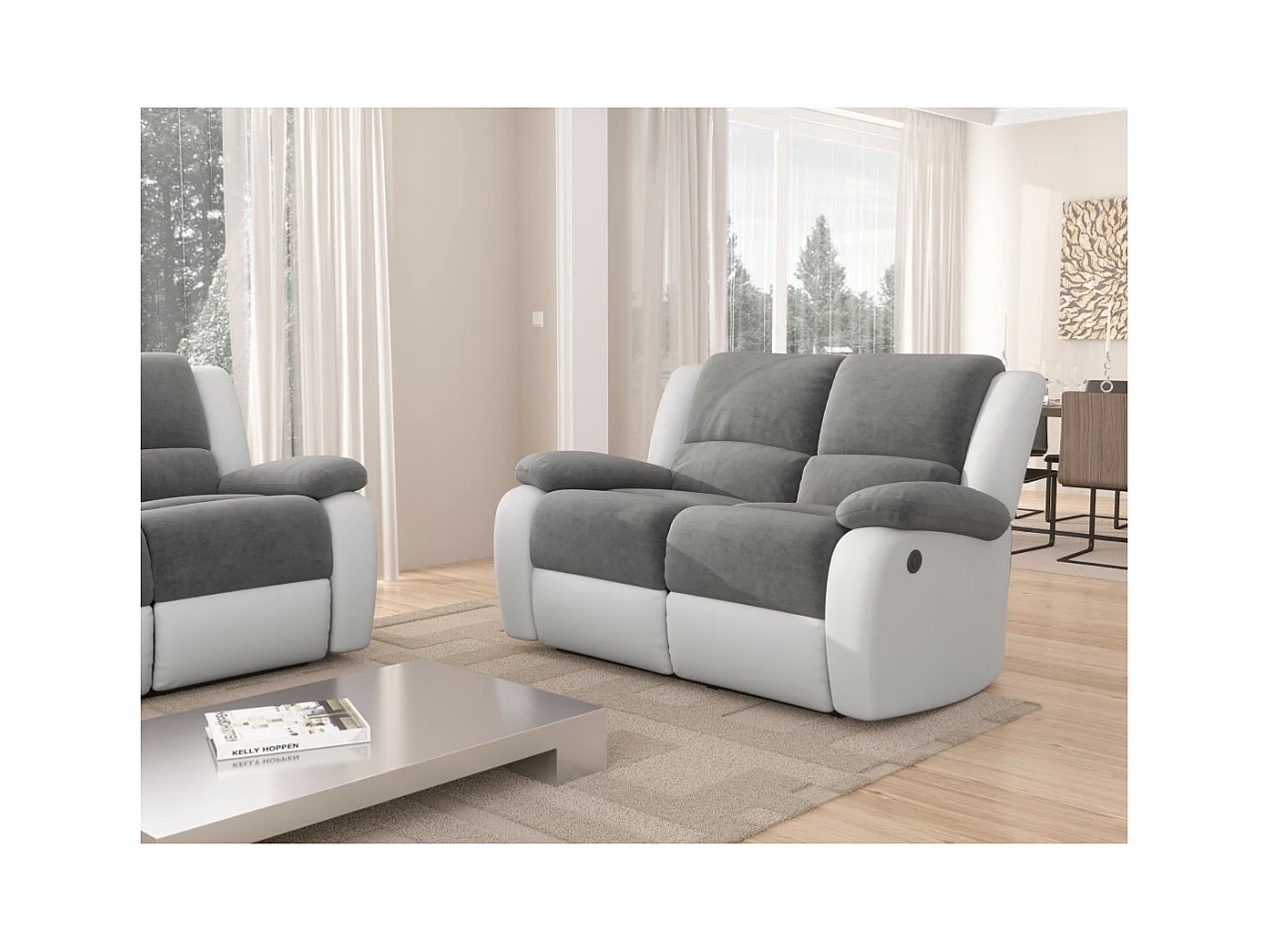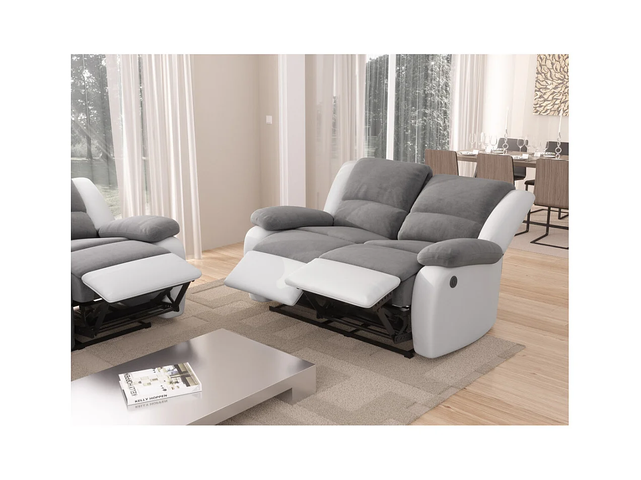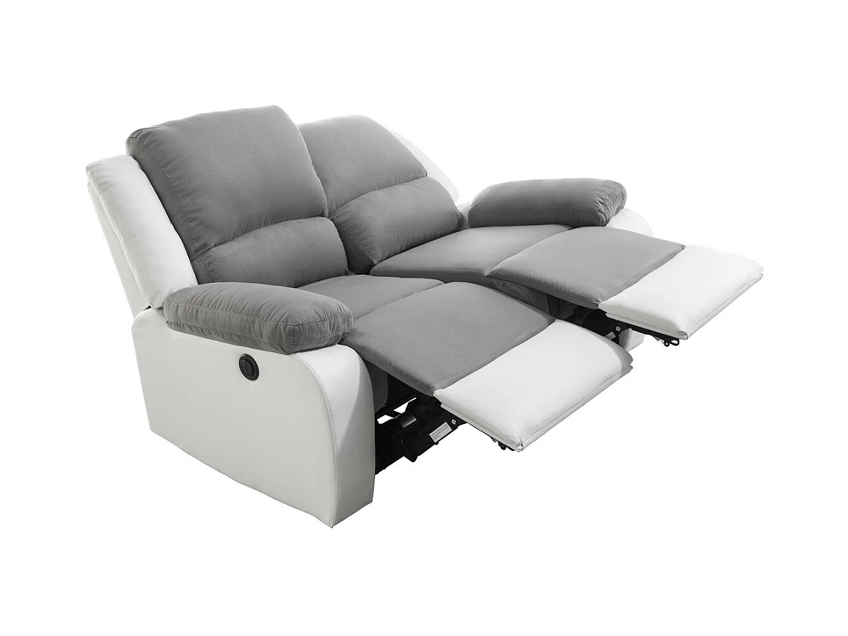 Canapé de Relaxation électrique 2 places Microfibre et Simili Léo - Blanc et gris - L143 x 93 x 96cm - Loungitude
