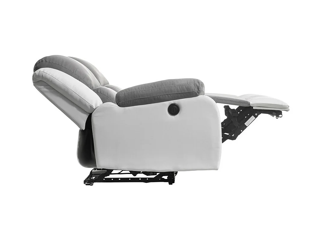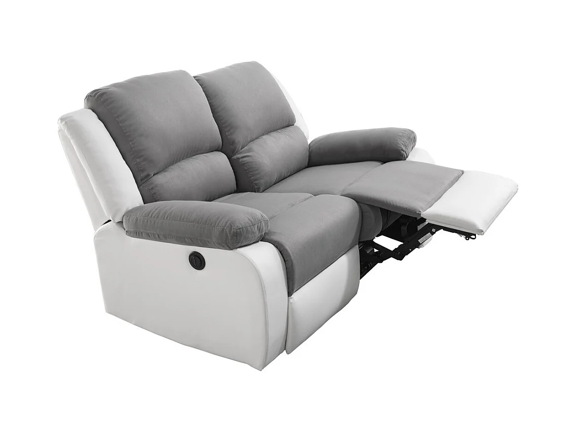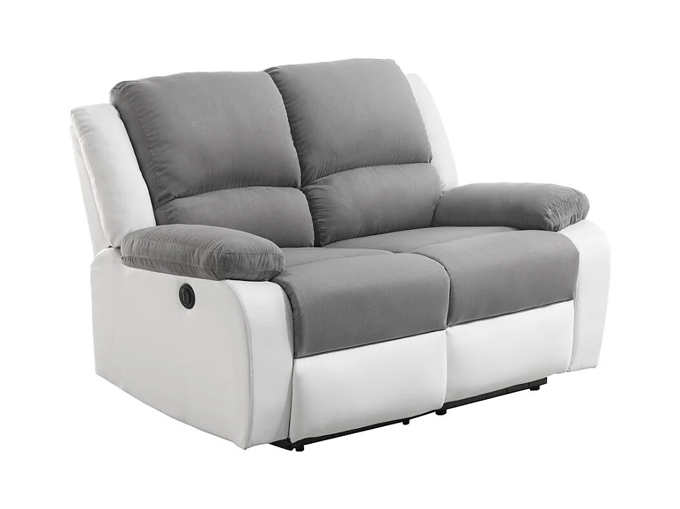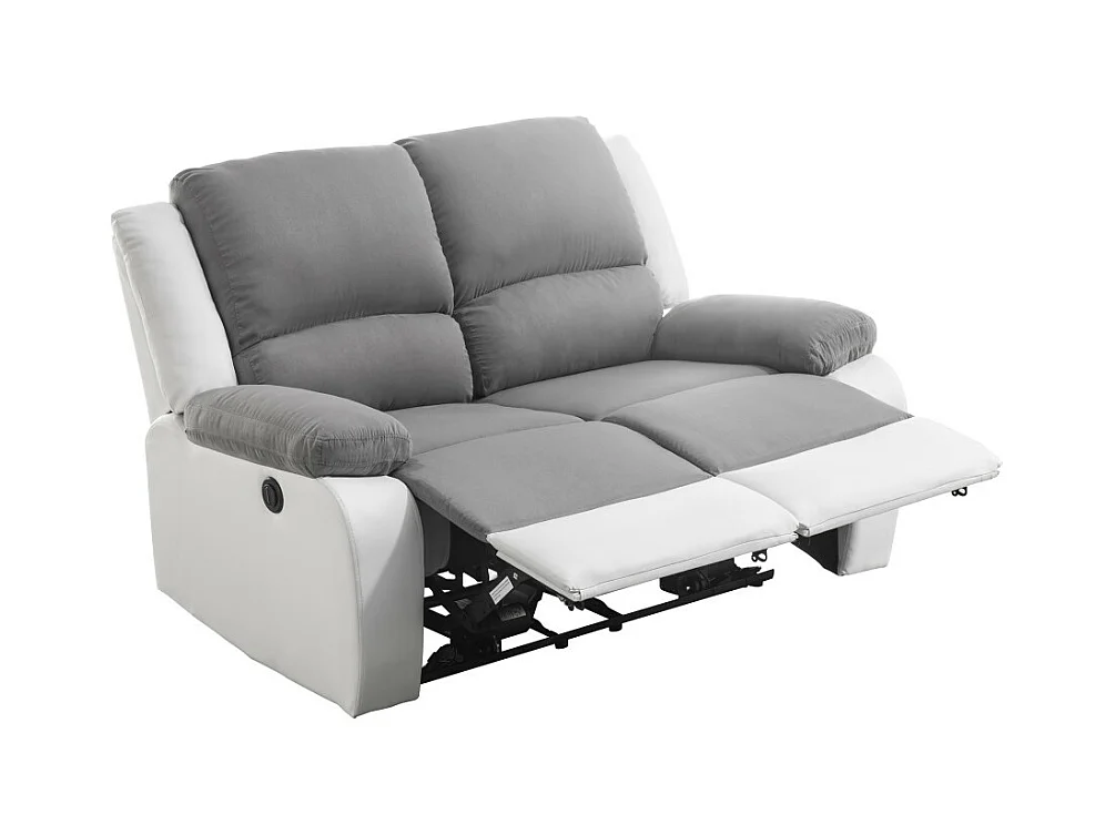 Canapé de Relaxation électrique 2 places Microfibre et Simili Léo - Blanc et gris - L143 x 93 x 96cm - Loungitude