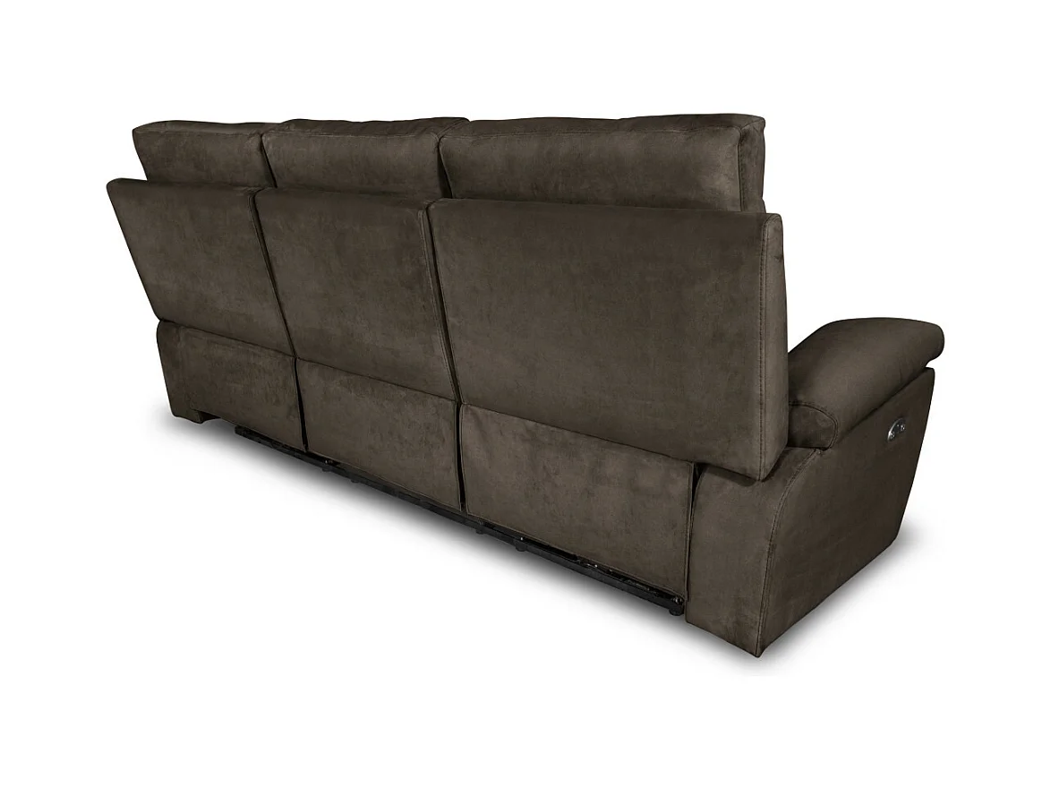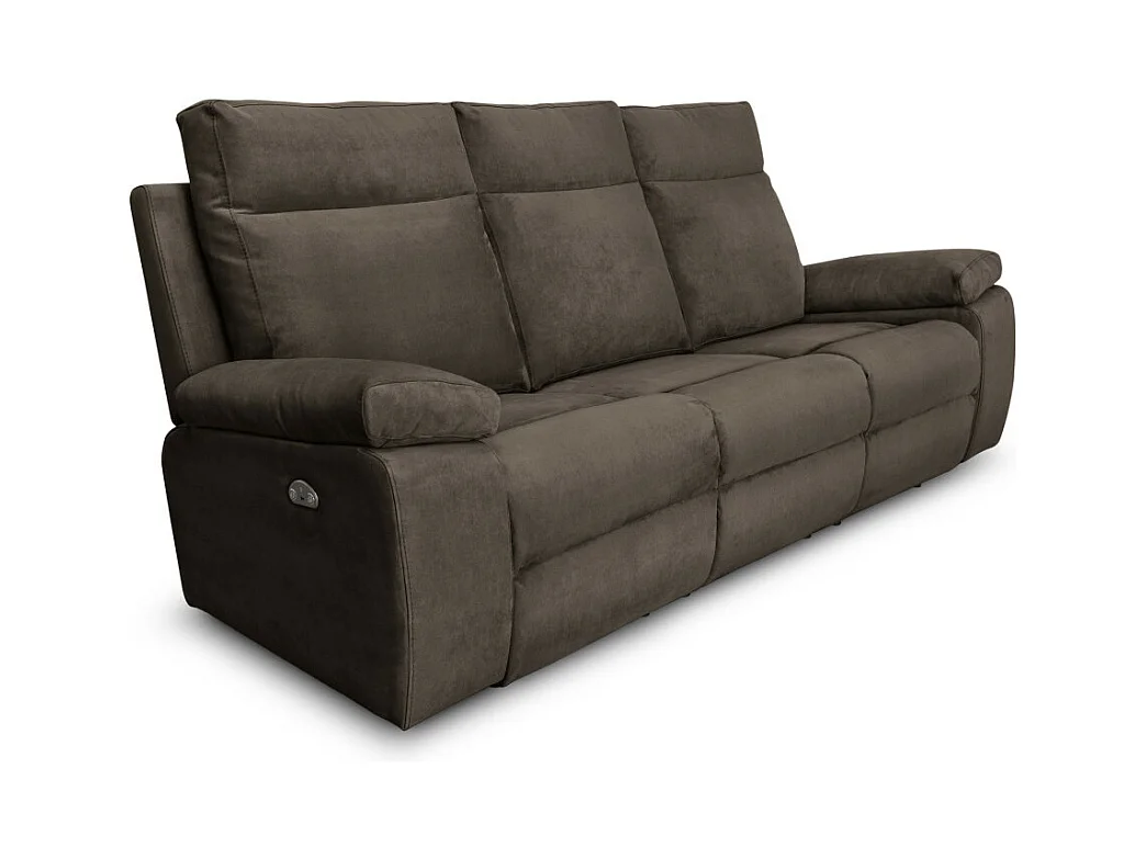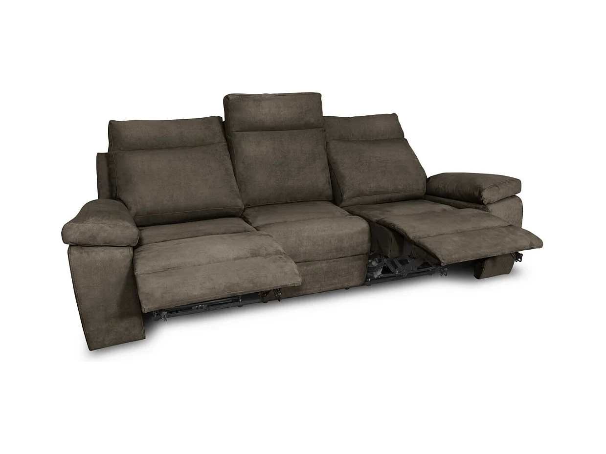 Canapé de relaxation électrique 3 places en tissu Houda - Taupe - L235 x 93 x 105cm - Loungitude