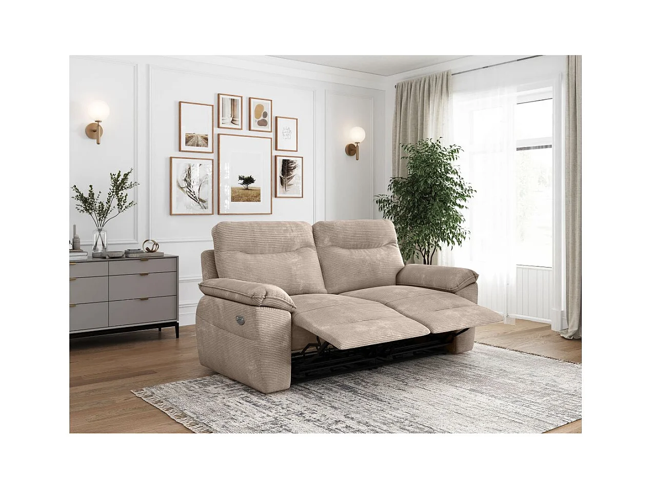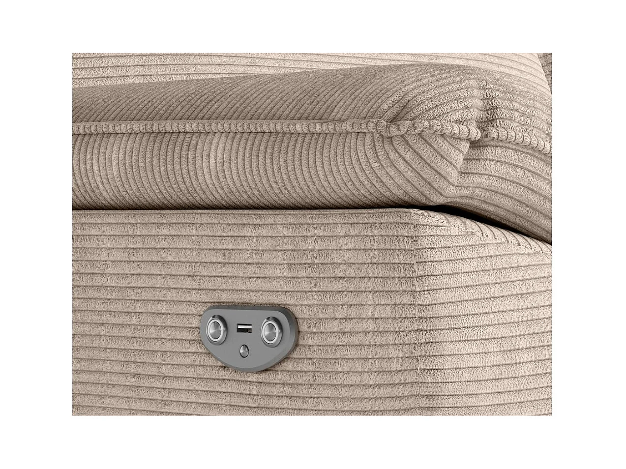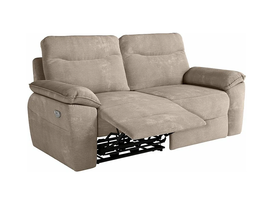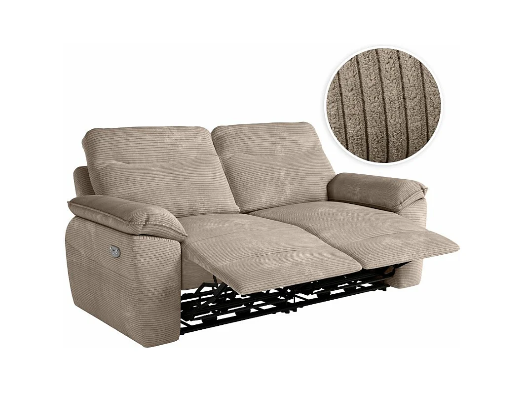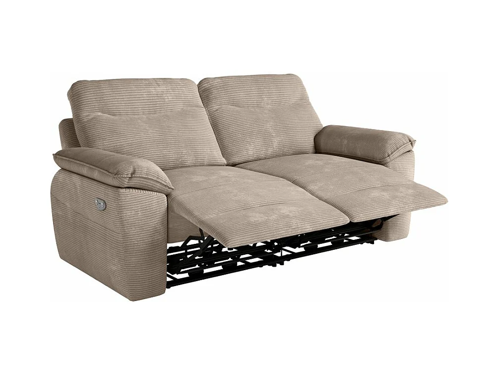 Canapé de relaxation électrique Ross 3 places en velours côtelé - Taupe - L200 x P100 x H102cm - Loungitude