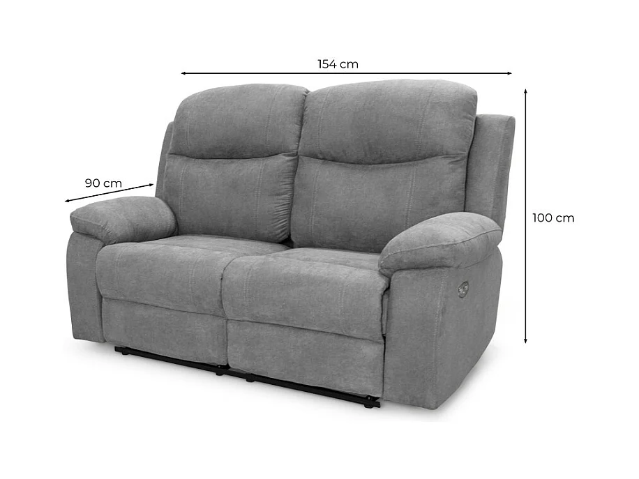 Canapé de relaxation manuel 2 places en tissu Bona - Gris clair - L154 x 90 x 100cm - Loungitude