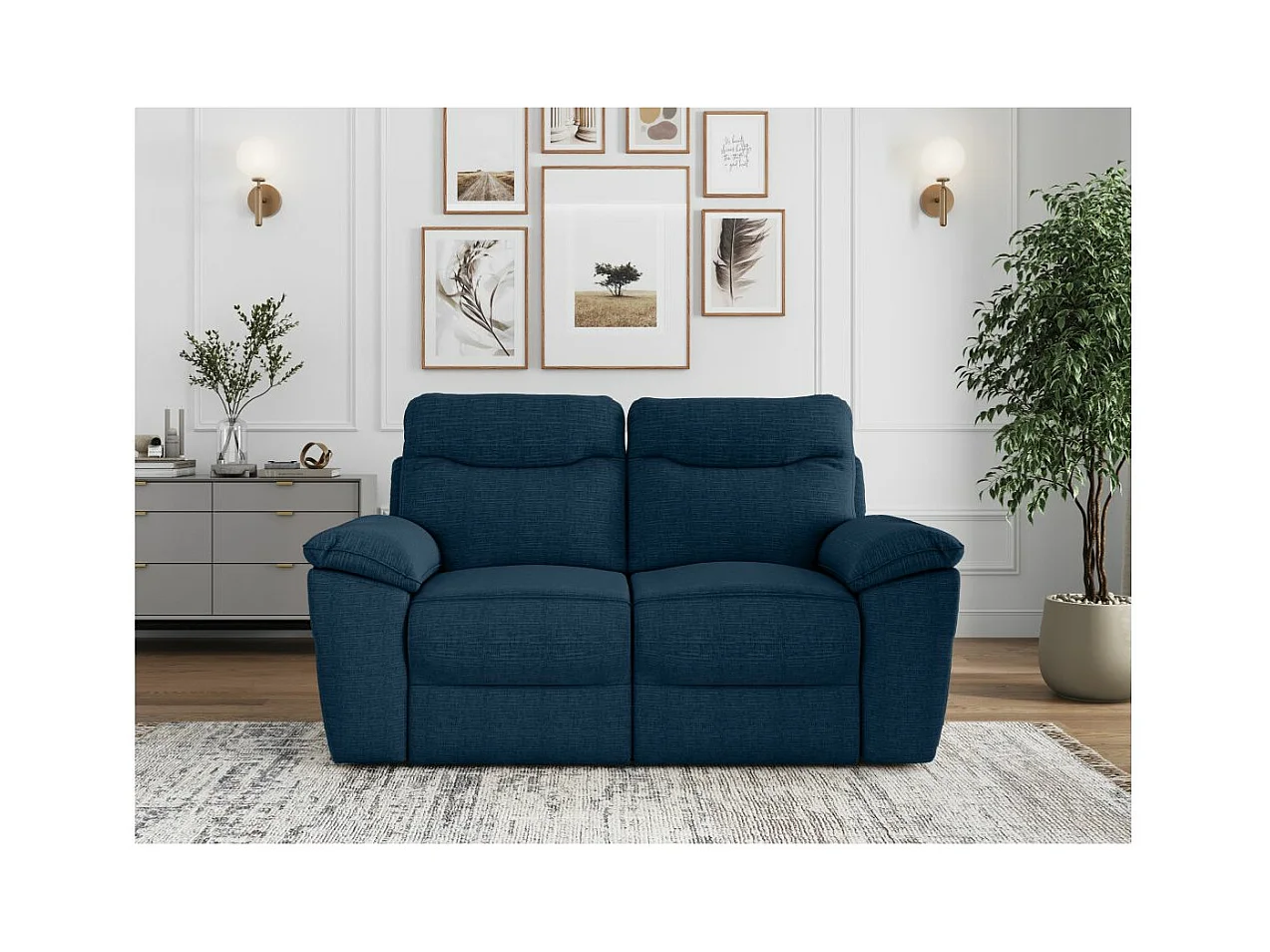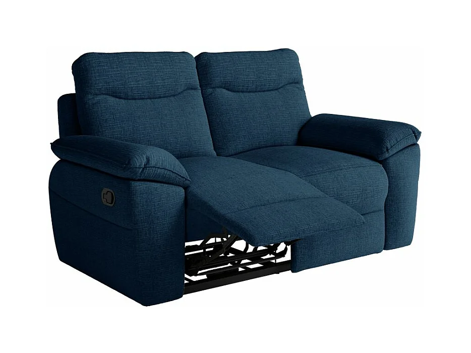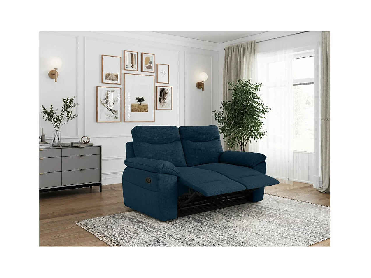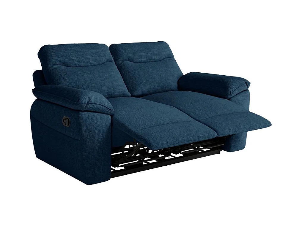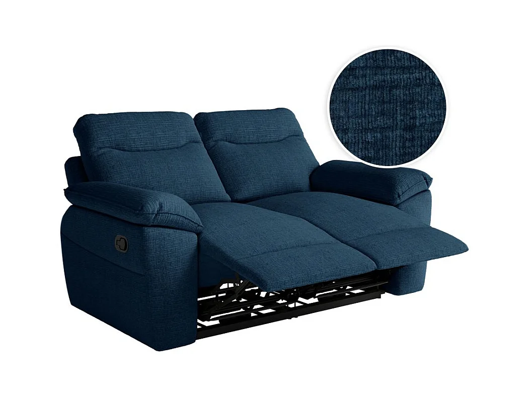 Canapé de relaxation manuel Ross 2 places en tissu texturé 3D - Bleu foncé - L160 x P100 x H102cm - Loungitude